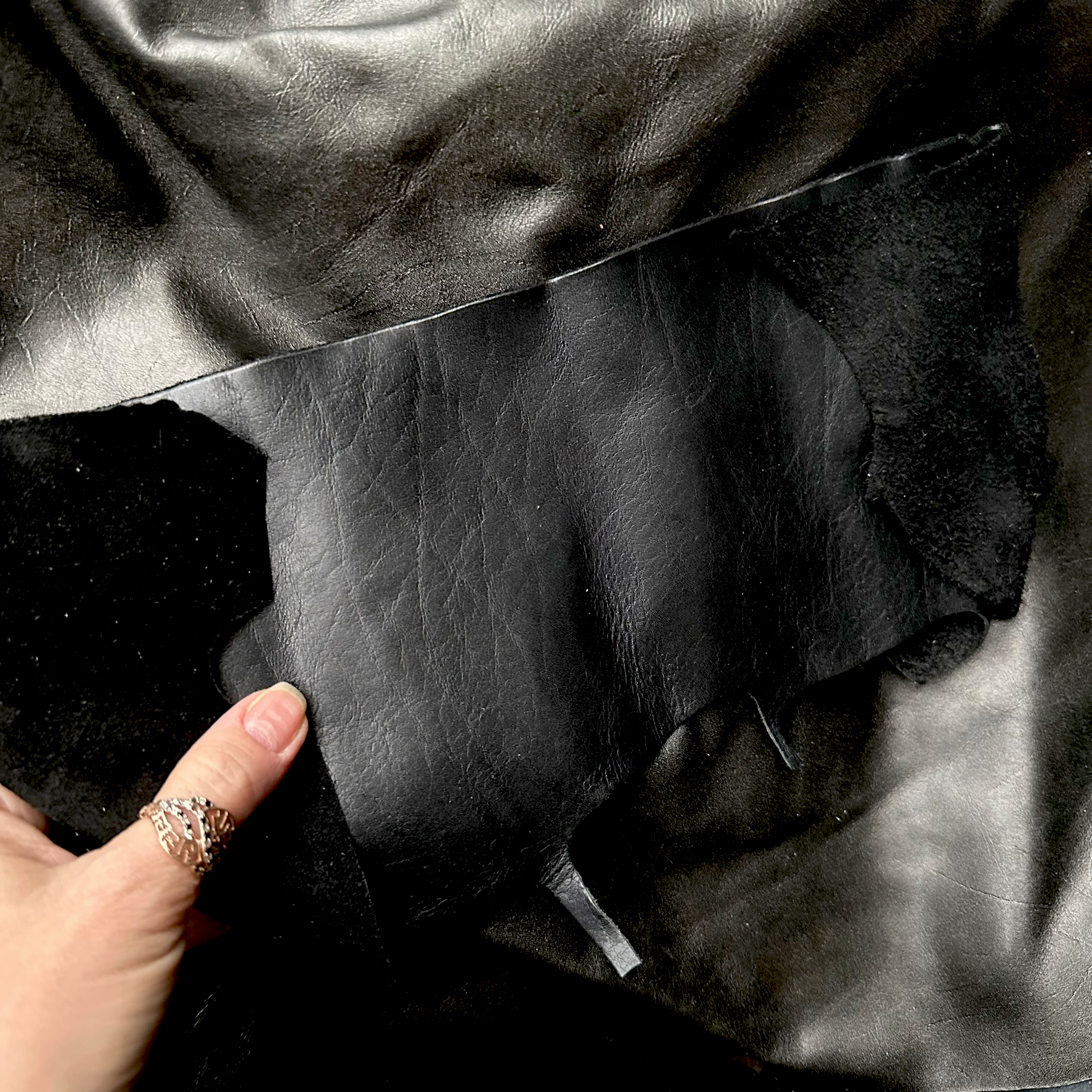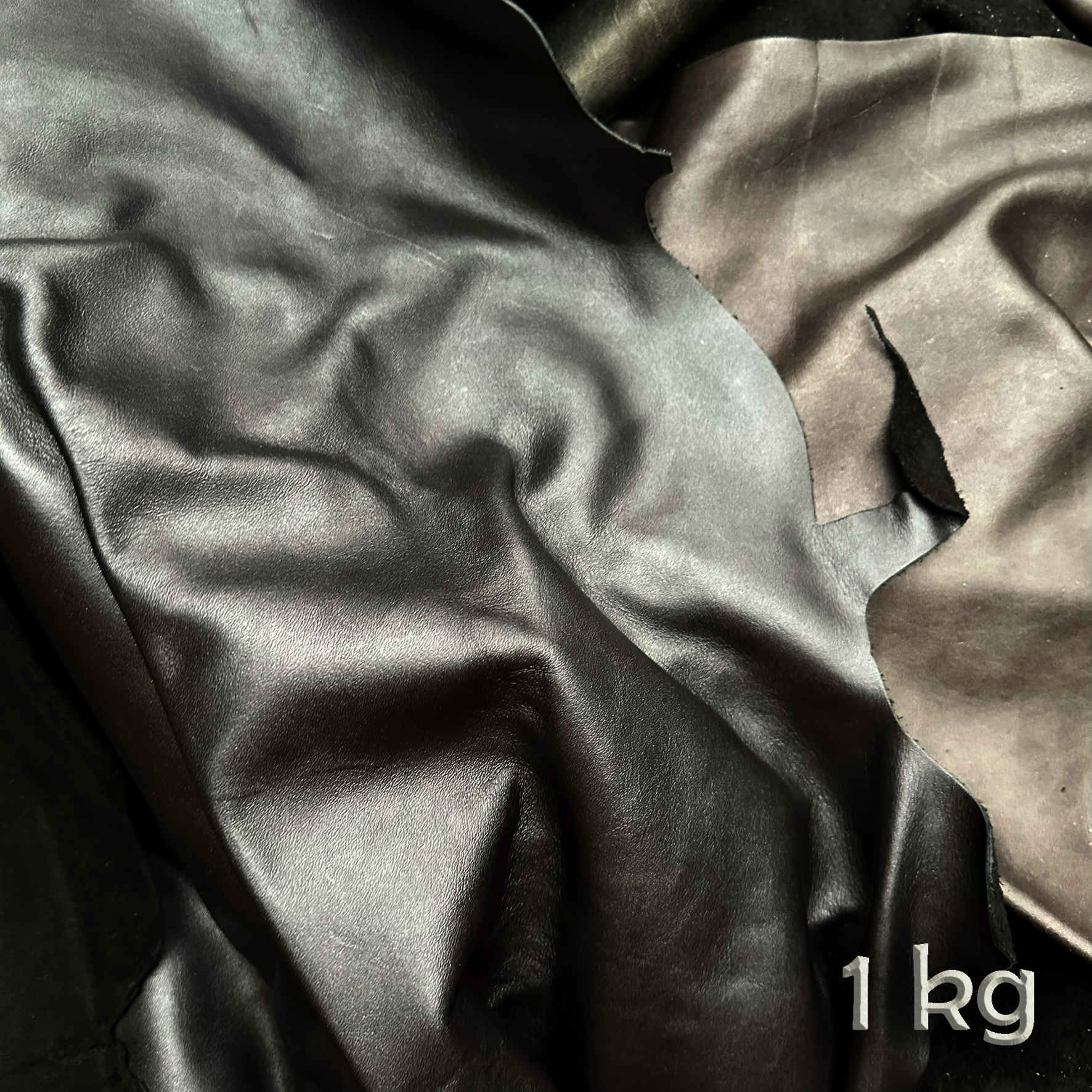 Lederreste-Paket 1 kg – Rindleder in SCHWARZ und anderen dunklen Farben große Stücke