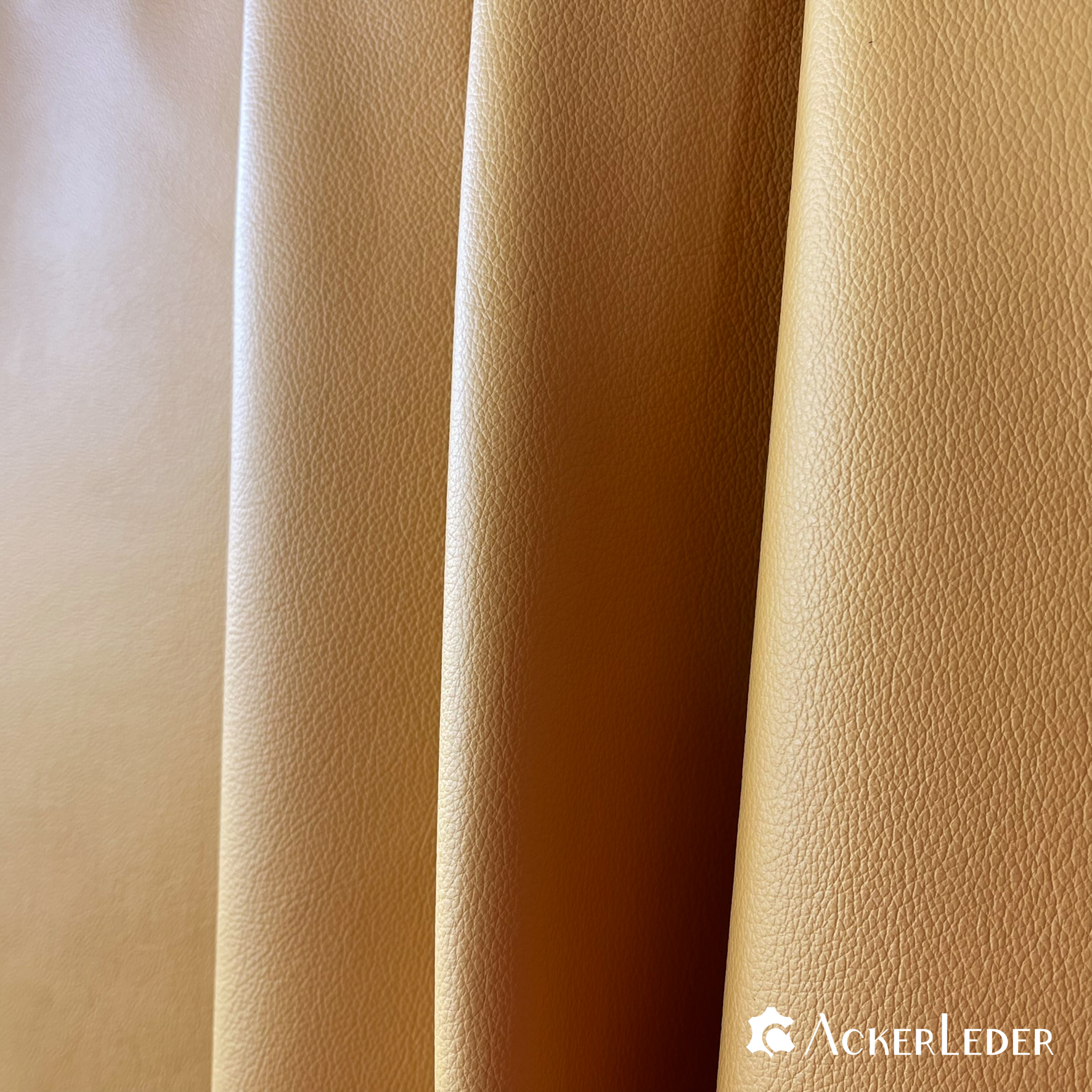 Unser Möbelleder in der außergewöhnlichen Farbe „Curry Gelb“ bringt frischen Wind in deine Projekte. Der zarte Pastellfarbton mit einem leichten Rotanteil verleiht dem Leder eine warme, einladende Ausstrahlung. Mit seiner feinen Narbung und weichen Haptik eignet es sich perfekt für moderne Polsterarbeiten und stilvolle Lederwaren.