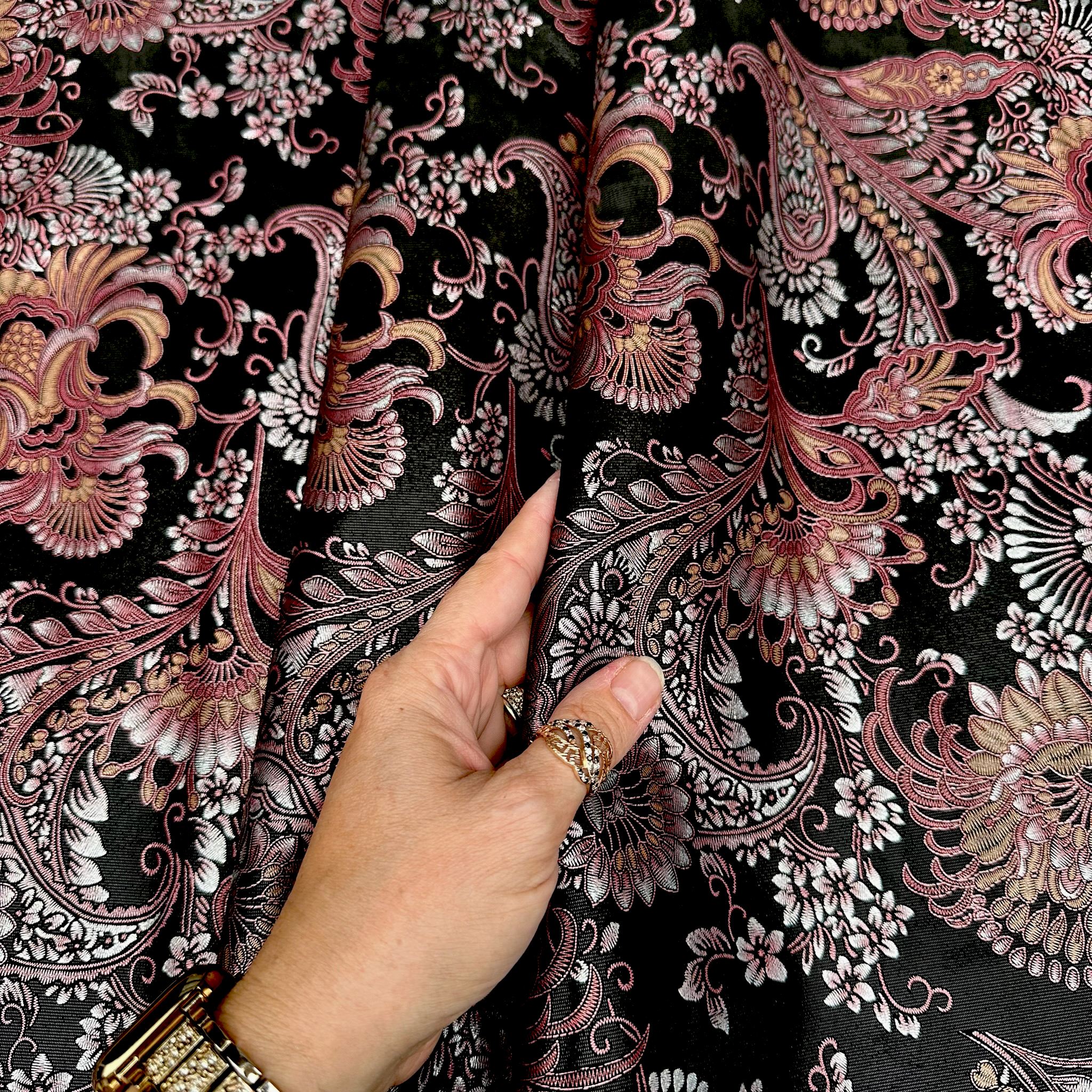 Weitere Metallicleder mit floralen oder künstlerischen Mustern findest du in unserer Kategorie „Schuh- & Taschenleder“.