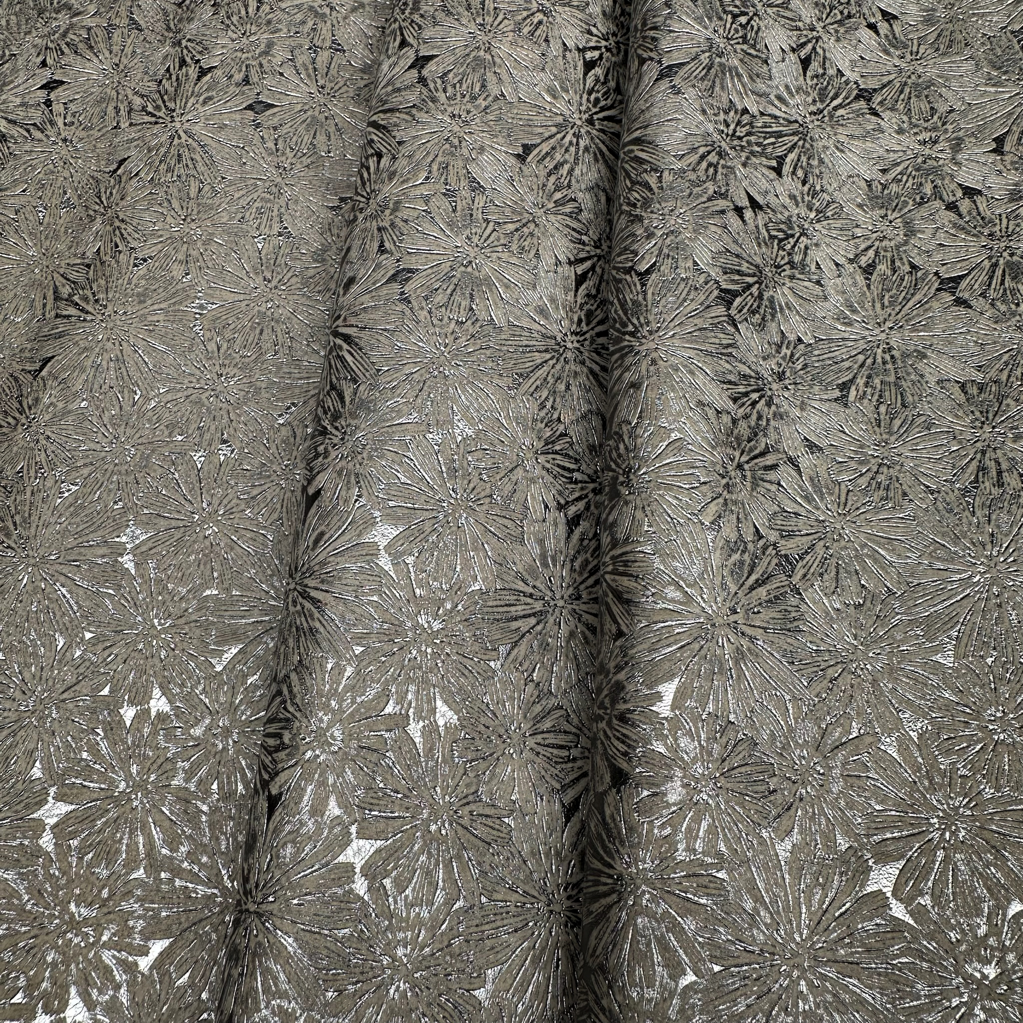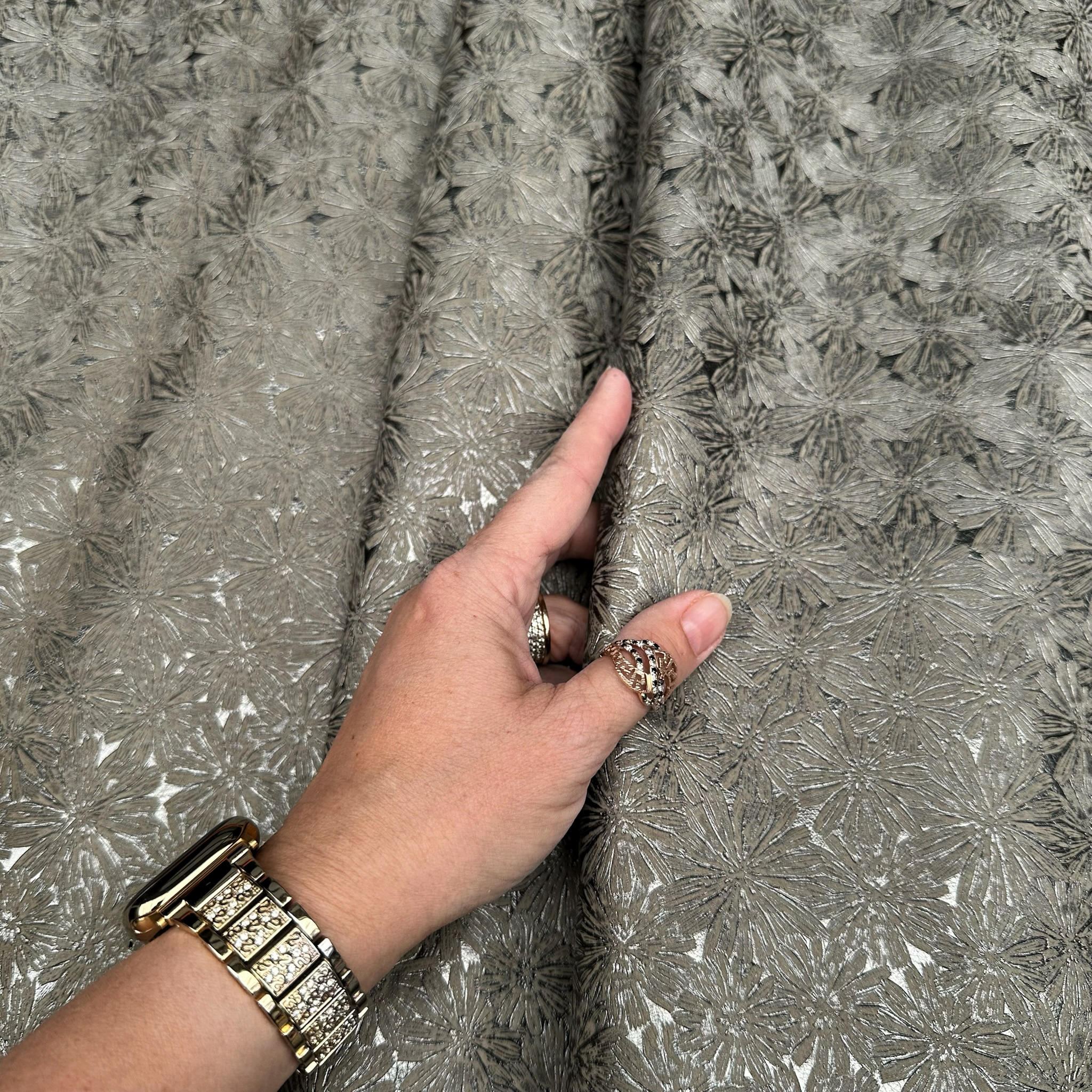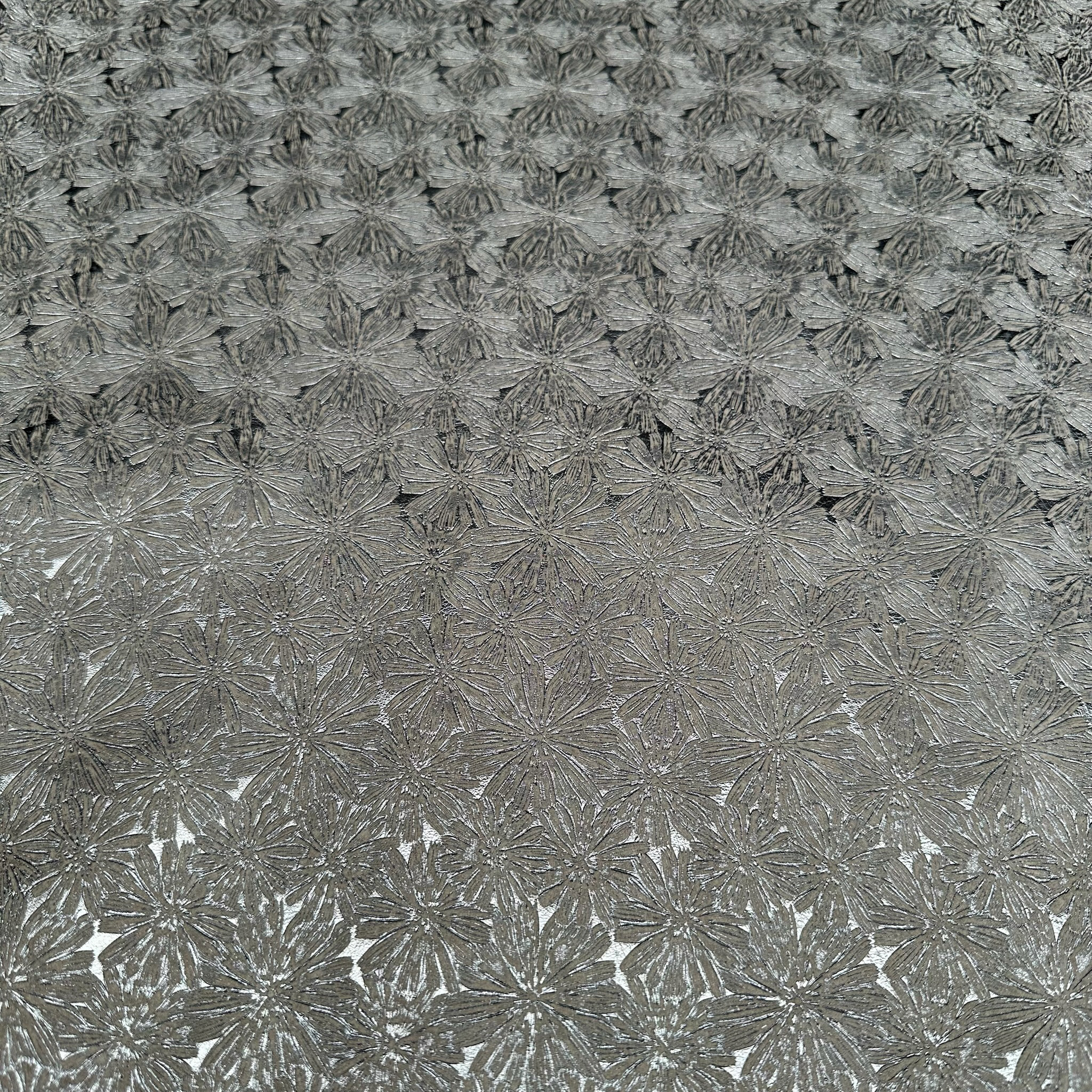 Produktinformationen "Schuh- & Taschenleder „Blumen Taupe-Silber“ – Nubuk-Rindleder mit 3D-Prägung & Metallic-Folierung"