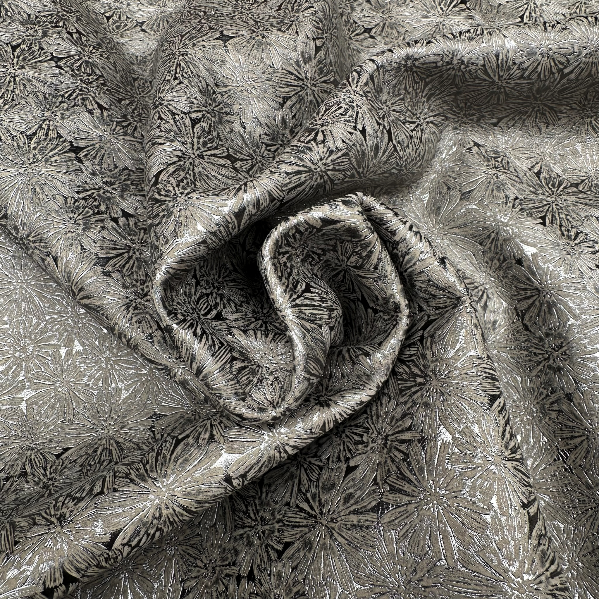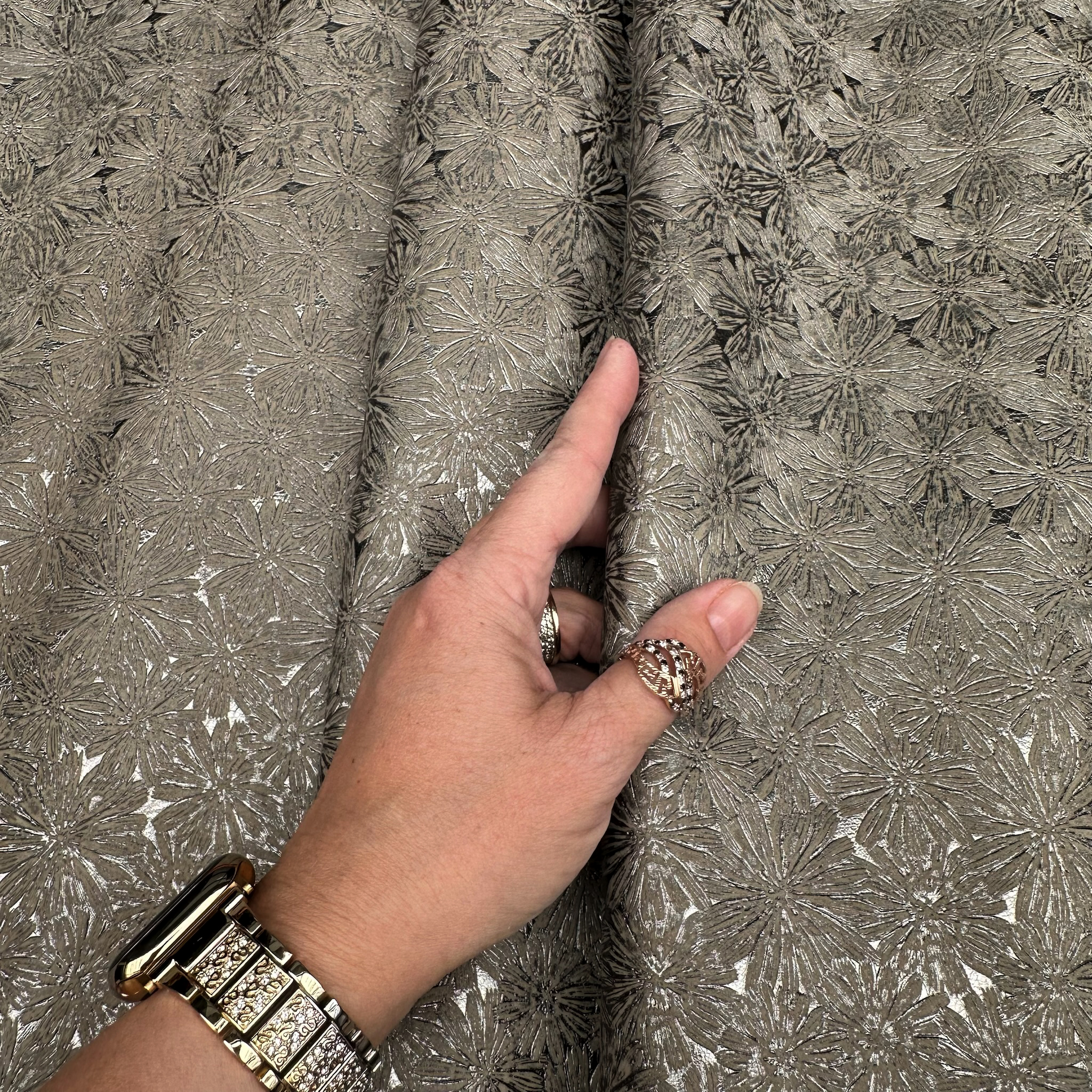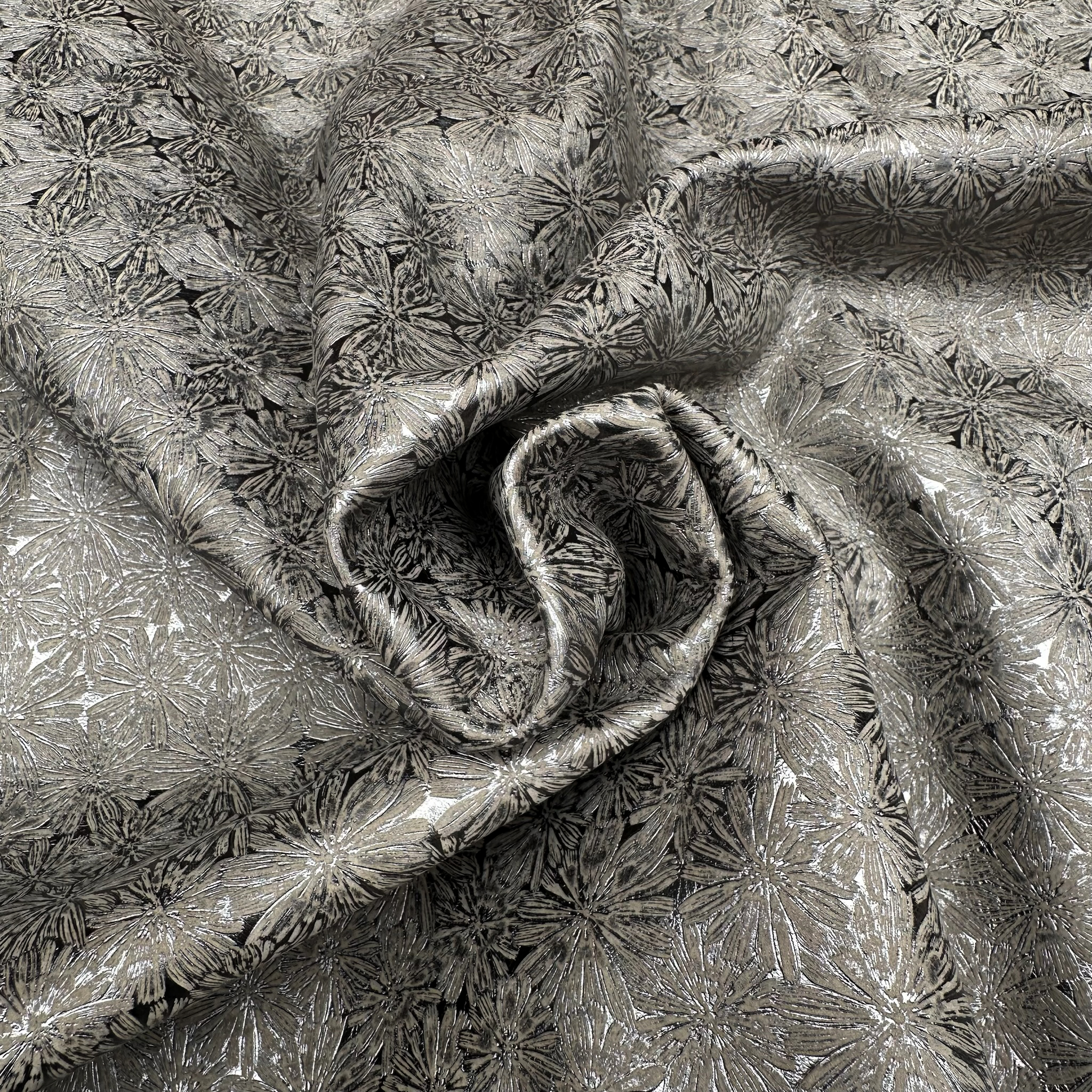 Produktinformationen "Schuh- & Taschenleder „Blumen Taupe-Silber“ – Nubuk-Rindleder mit 3D-Prägung & Metallic-Folierung"