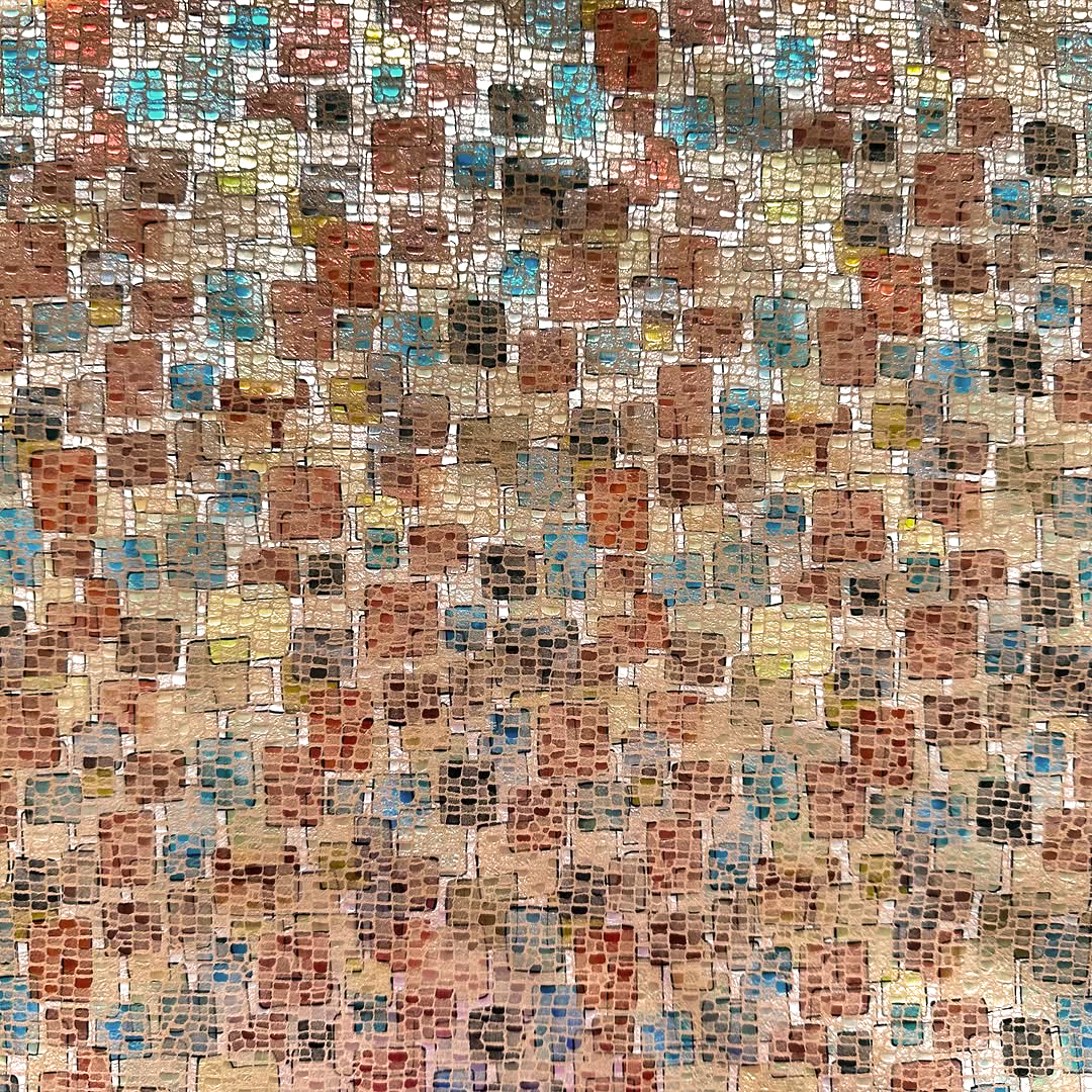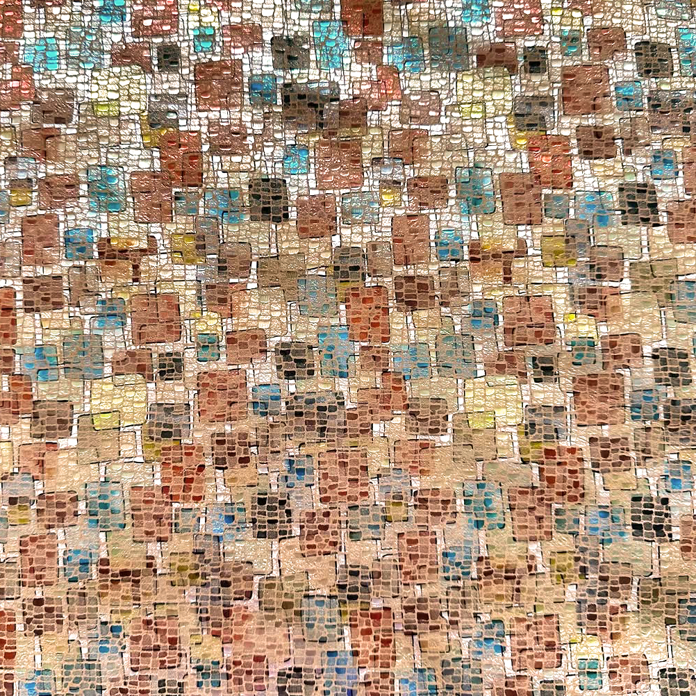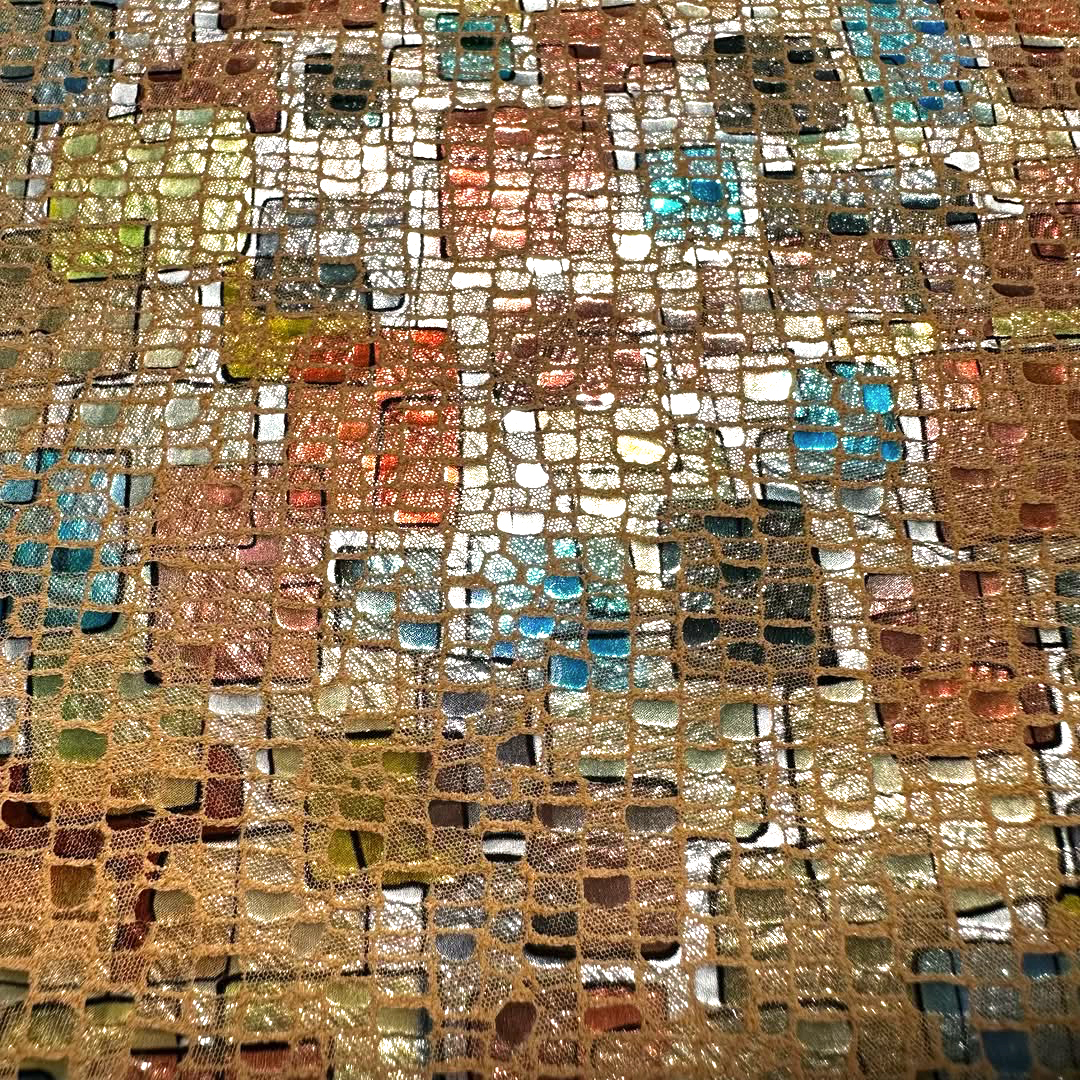Produktinformationen "Schuh- & Taschenleder „Bunte Quadrate“ – Hellbraunes Lammleder mit Folierung und Akzenten in Metallic"