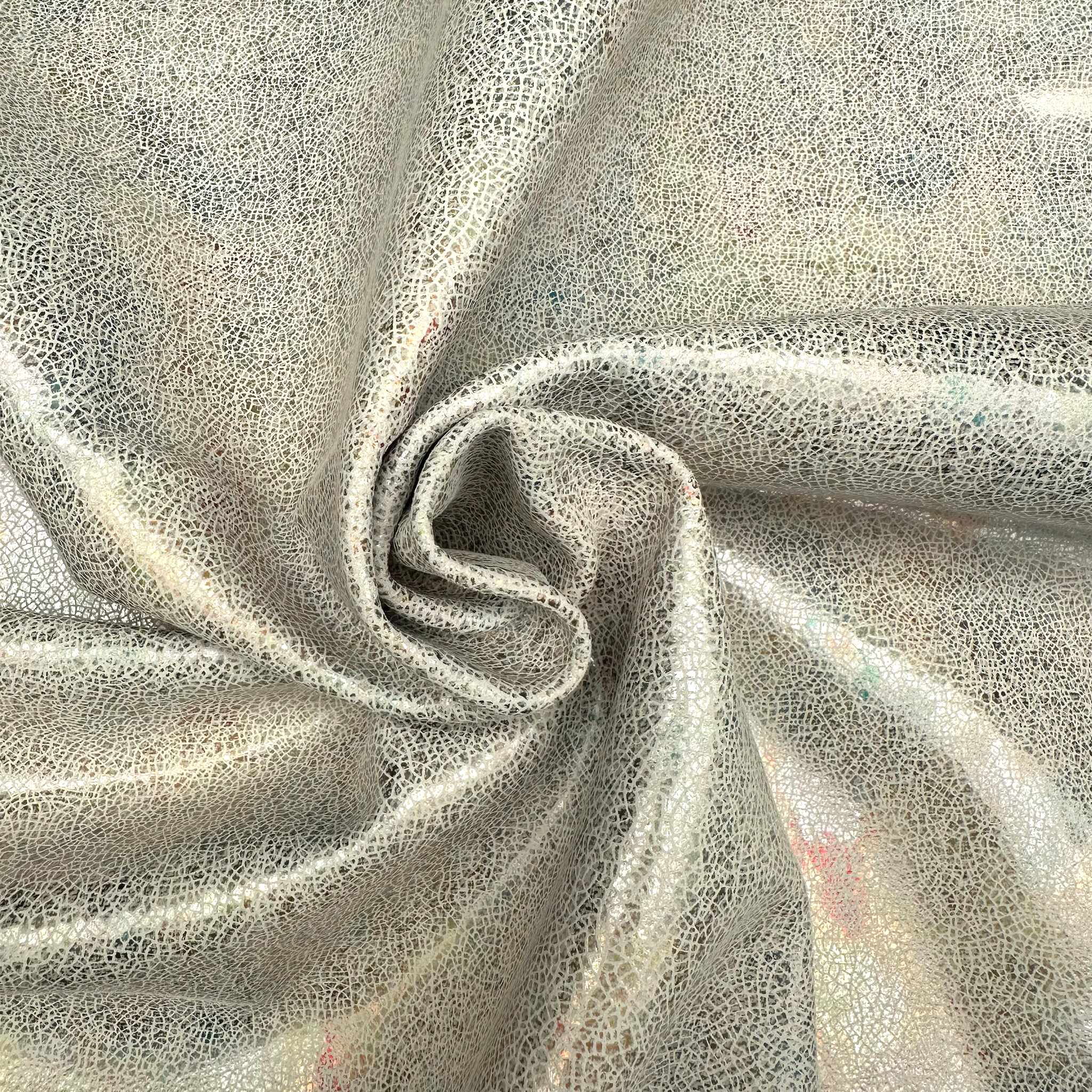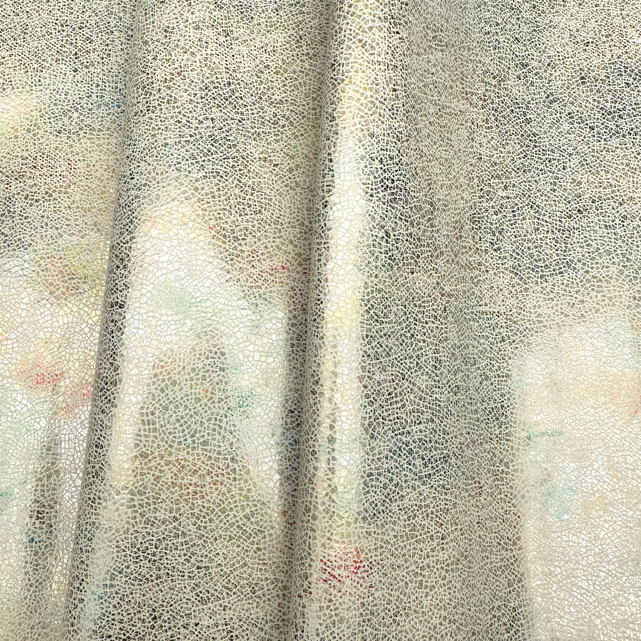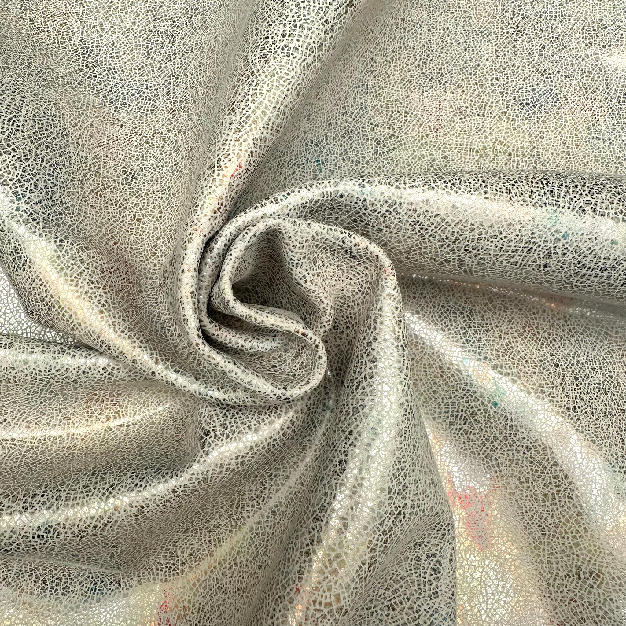 Produktinformationen "Schuh- & Taschenleder „Crackled Pearl“ – Rindleder mit irisierender Glanzfolie & Craquelé-Effekt"
