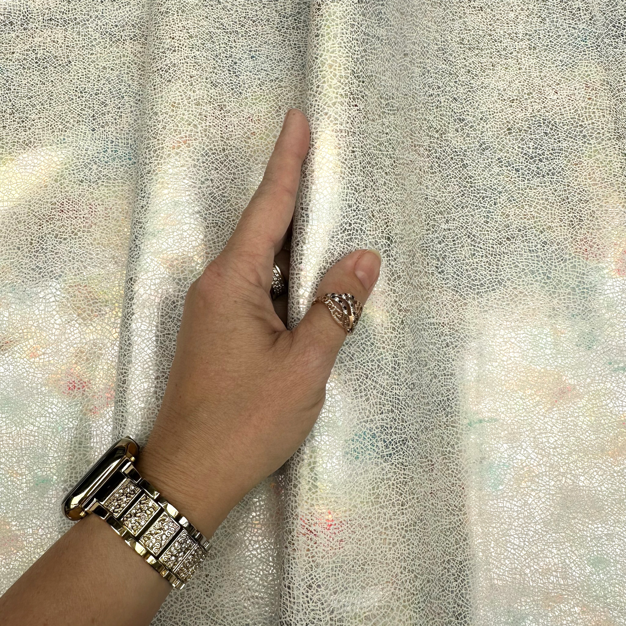 Schuh- & Taschenleder „Crackled Pearl“ – Rindleder mit irisierender Glanzfolie & Craquelé-Effekt