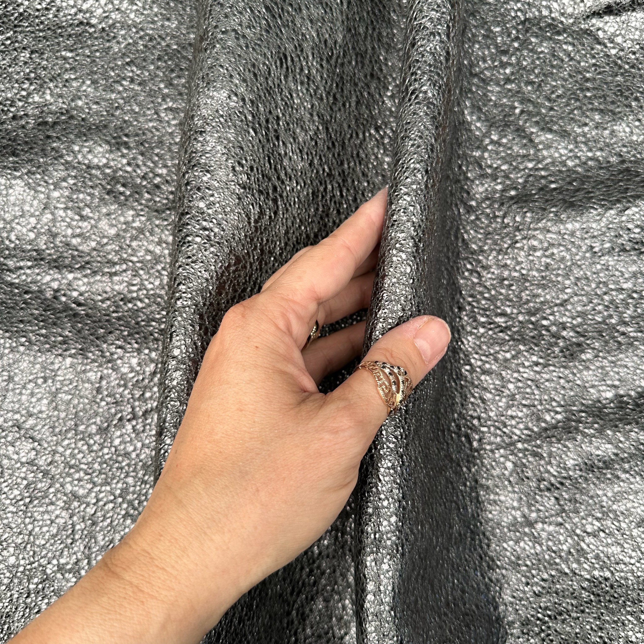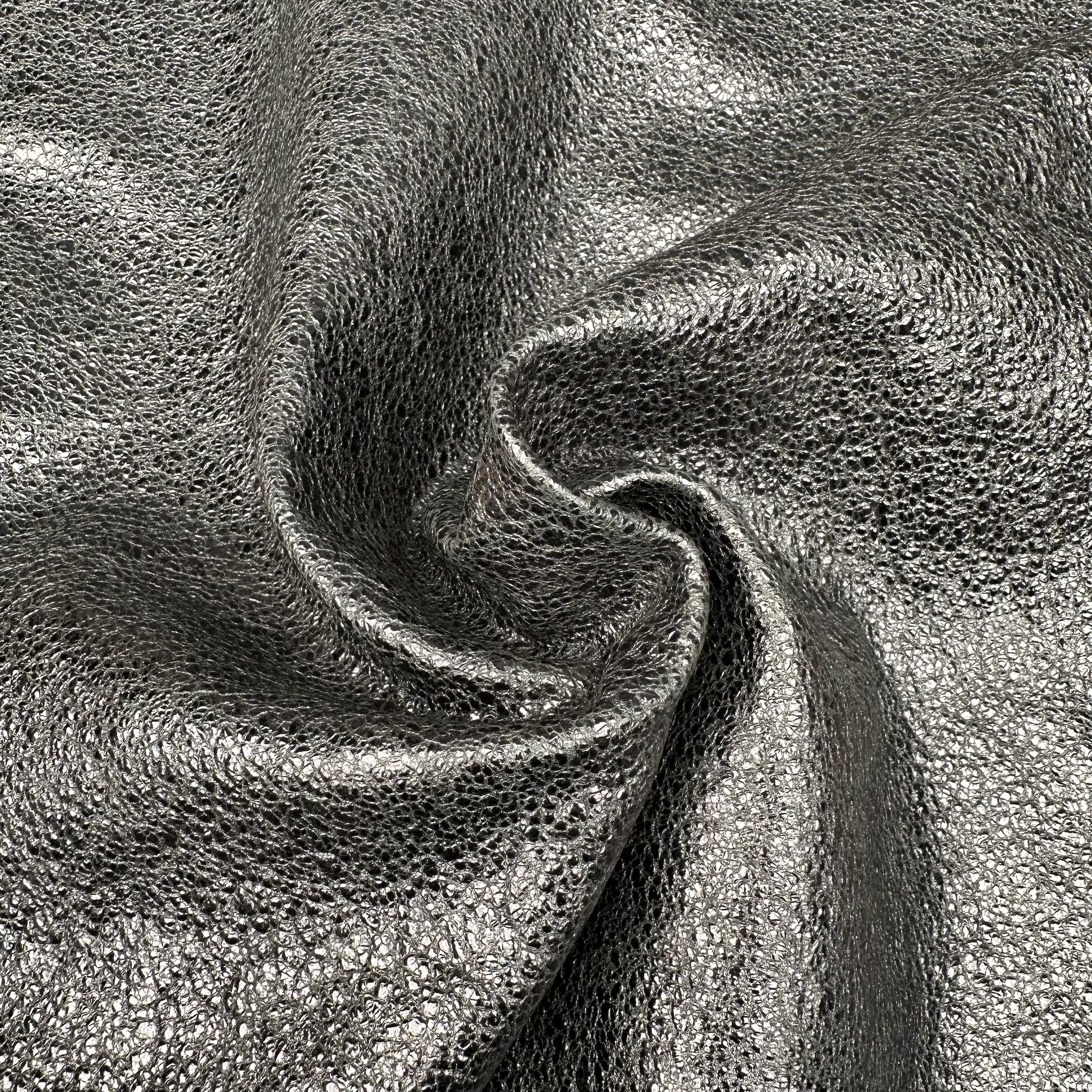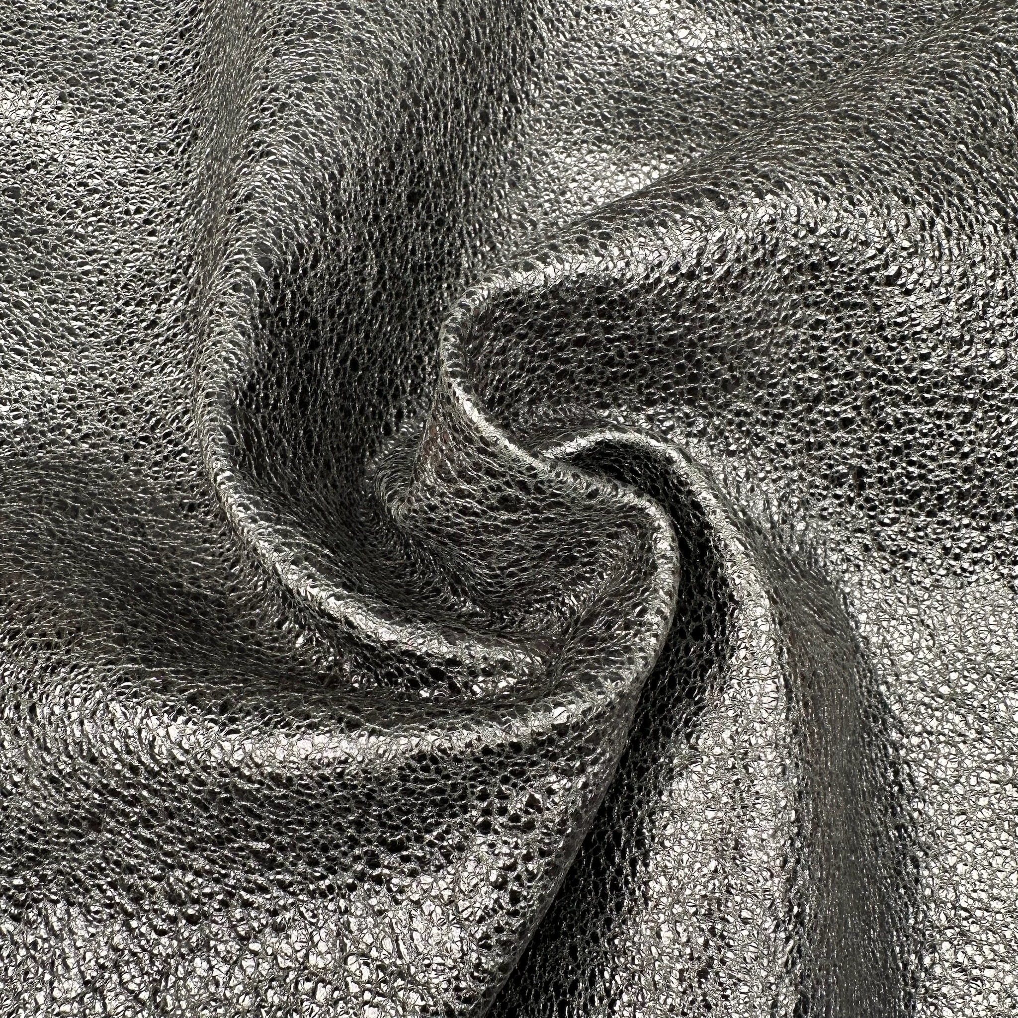 Produktinformationen "Schuh- & Taschenleder „Crackled Silver“ – Lammleder mit metallischer Glanzfolie & Craquelé-Effekt"