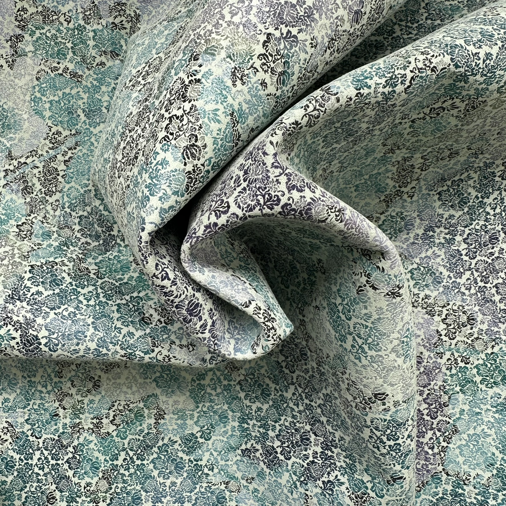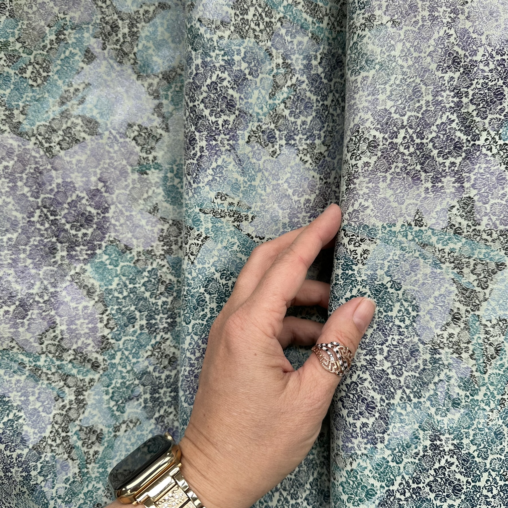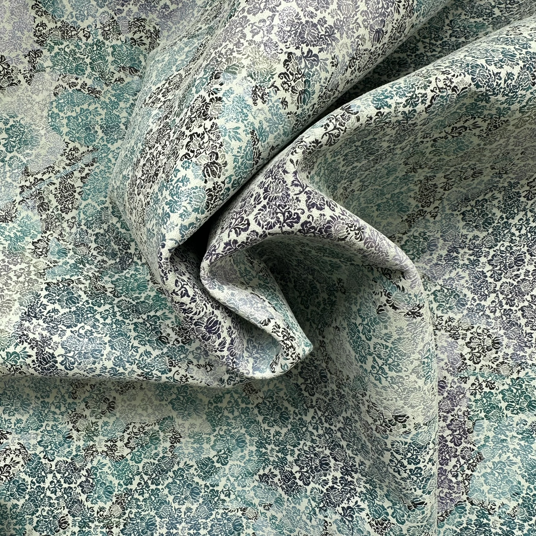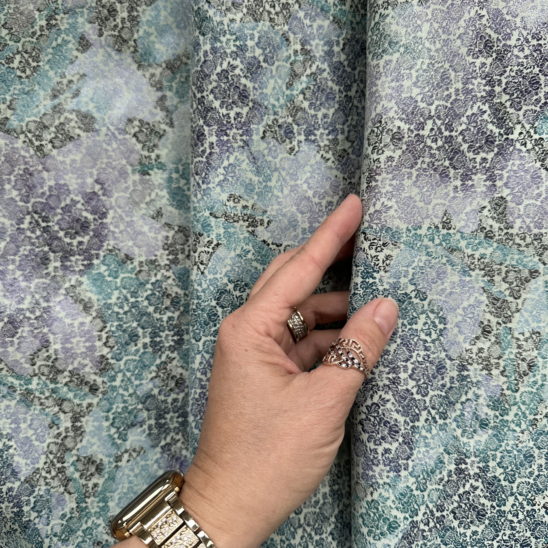 Dieses weiche Lammleder in hellem Grauton mit leichtem Grünstich wird durch eine feine florale Struktur zum besonderen Blickfang. Die glänzende Folienprägung in den Blütenvertiefungen sorgt für dezente Lichtreflexe – ideal für Designs mit natürlicher Eleganz und einem Hauch Romantik.