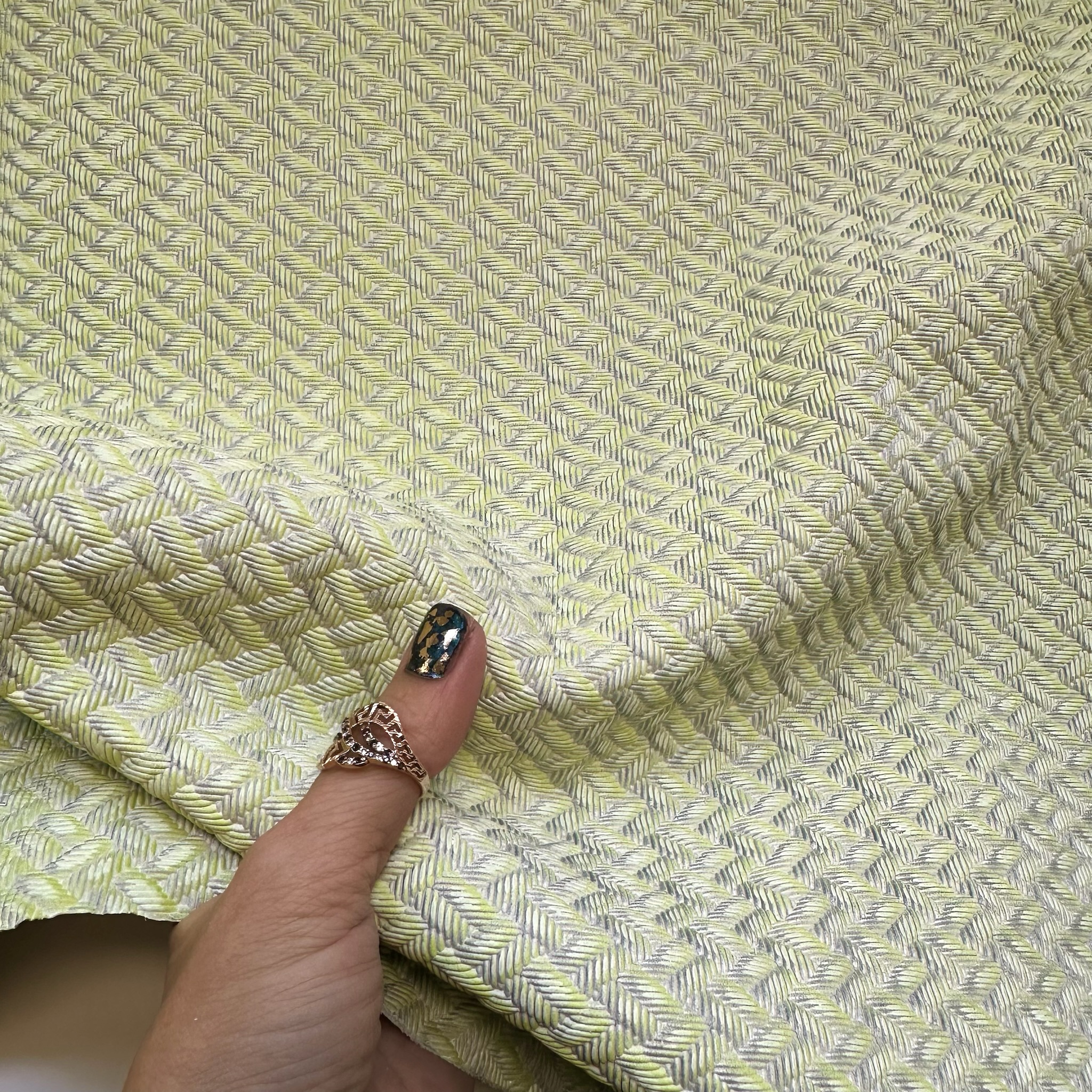 Schuh- & Taschenleder „Geflecht Grünweiß“ – Rindleder mit geprägtem Flechtmuster