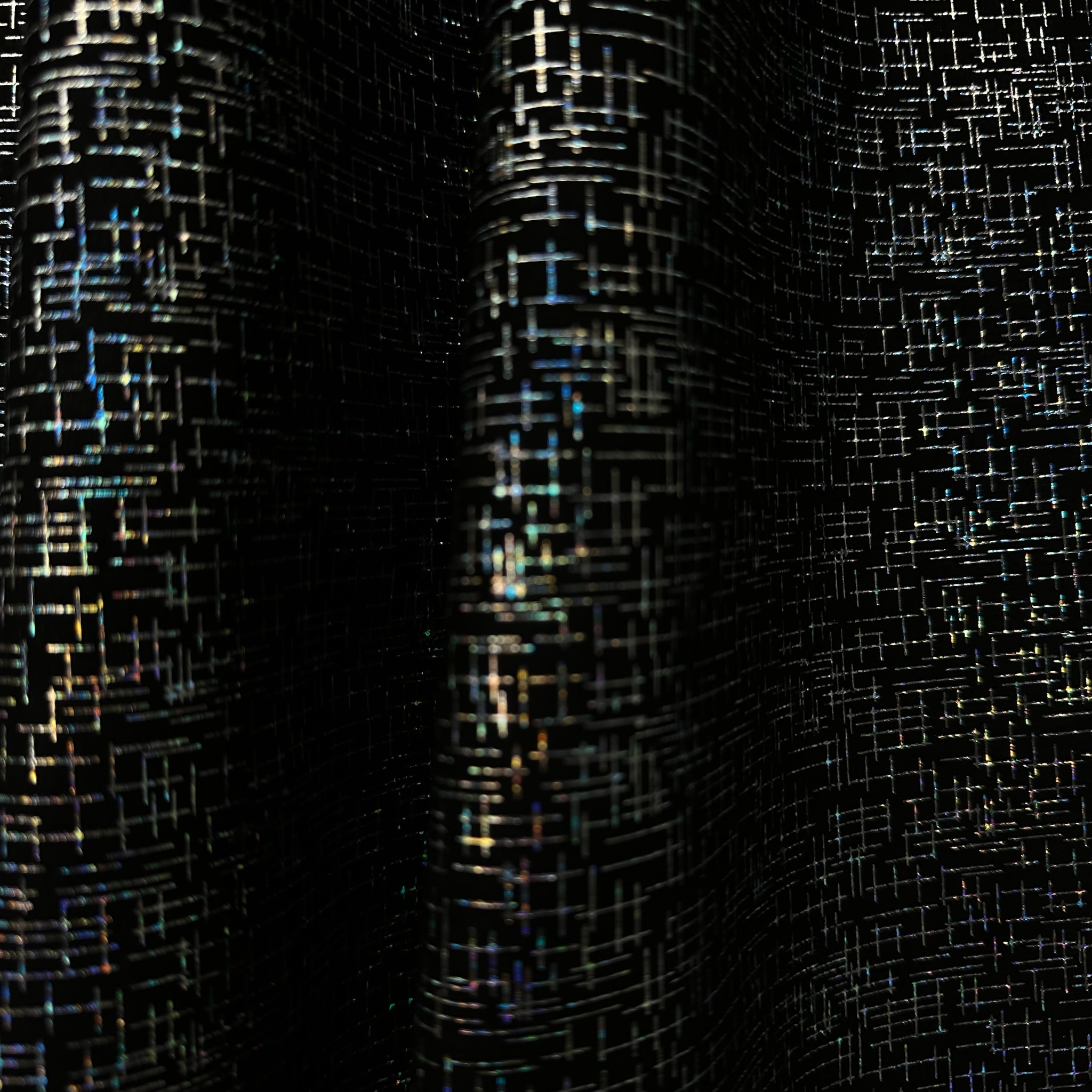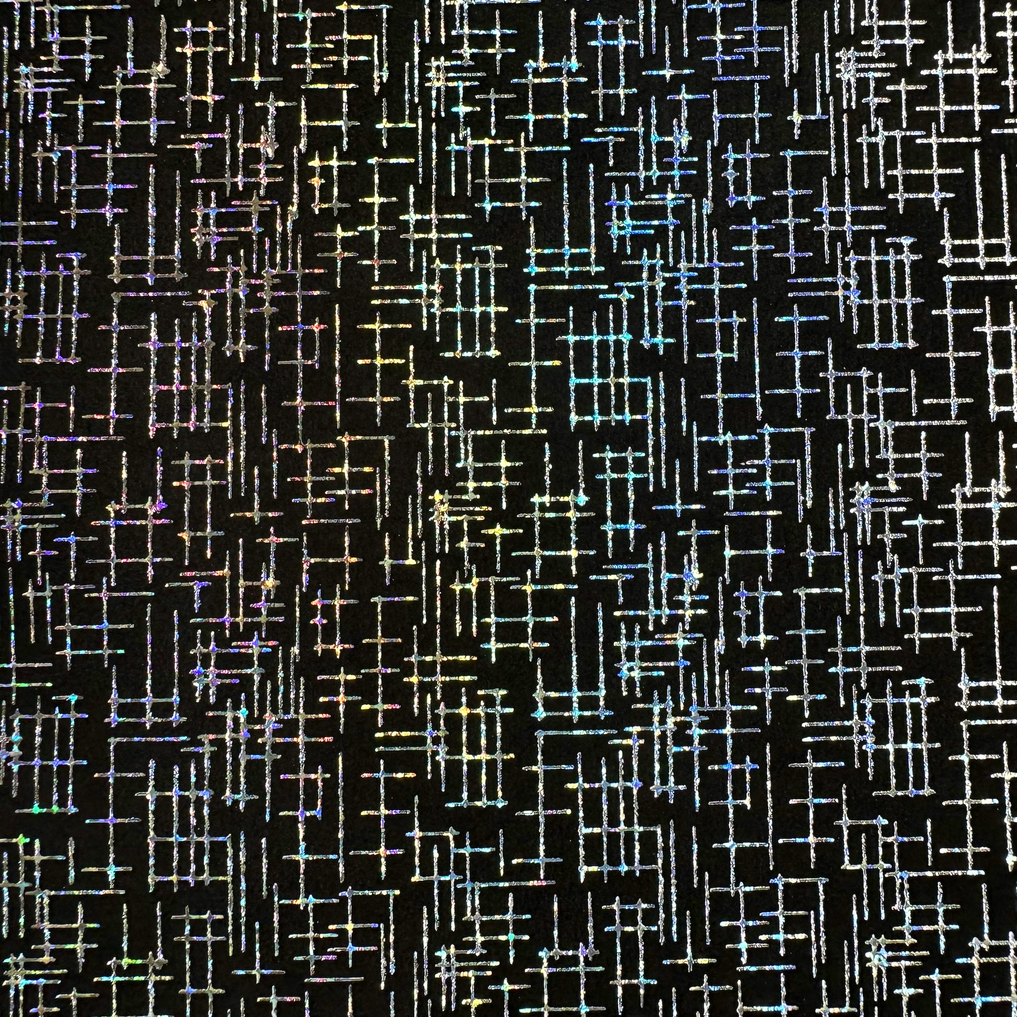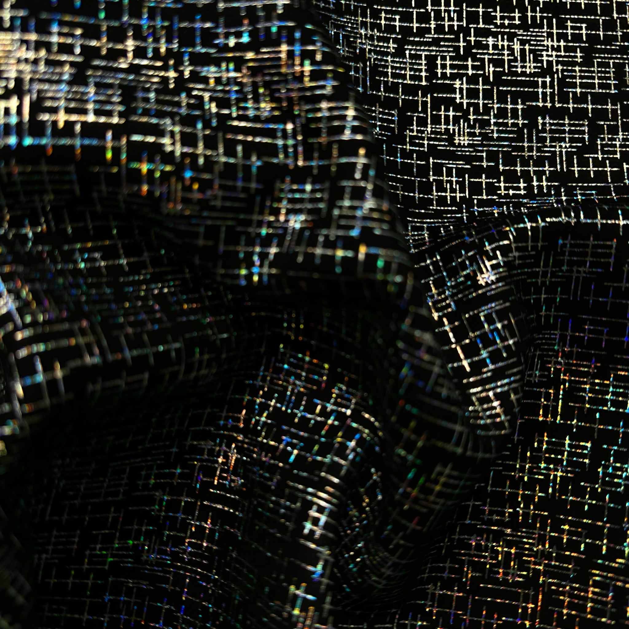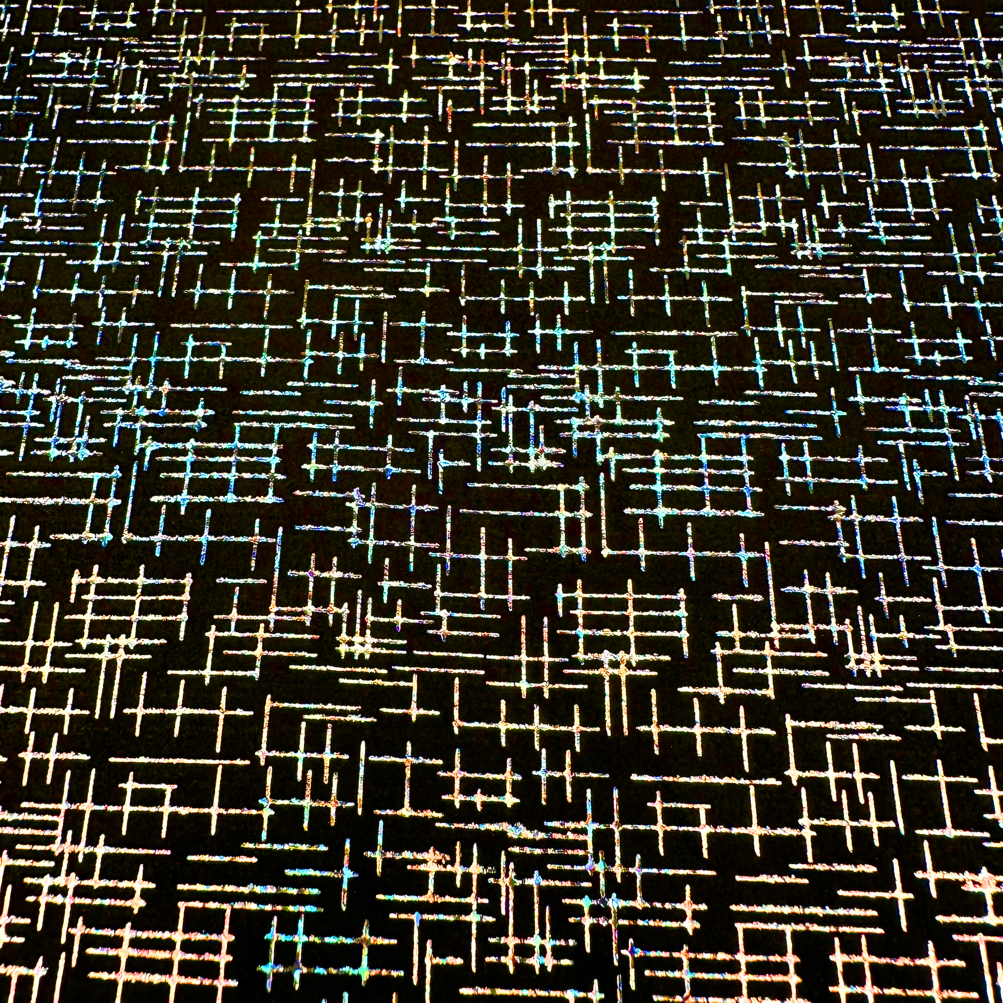 Dieses besondere Lammleder mit einer silber-metallischen Folierung auf tiefschwarzem Grund wirkt hypnotisierend durch sein irrisierendes Effekt. Die unregelmäßig verlaufendes Gittermuster erzeugt ein spannendes Lichtspiel – je nach Blickwinkel changiert die Oberfläche zwischen dezent und auffällig. Ideal für Projekte, die klare Linien mit edlem Glanz vereinen.