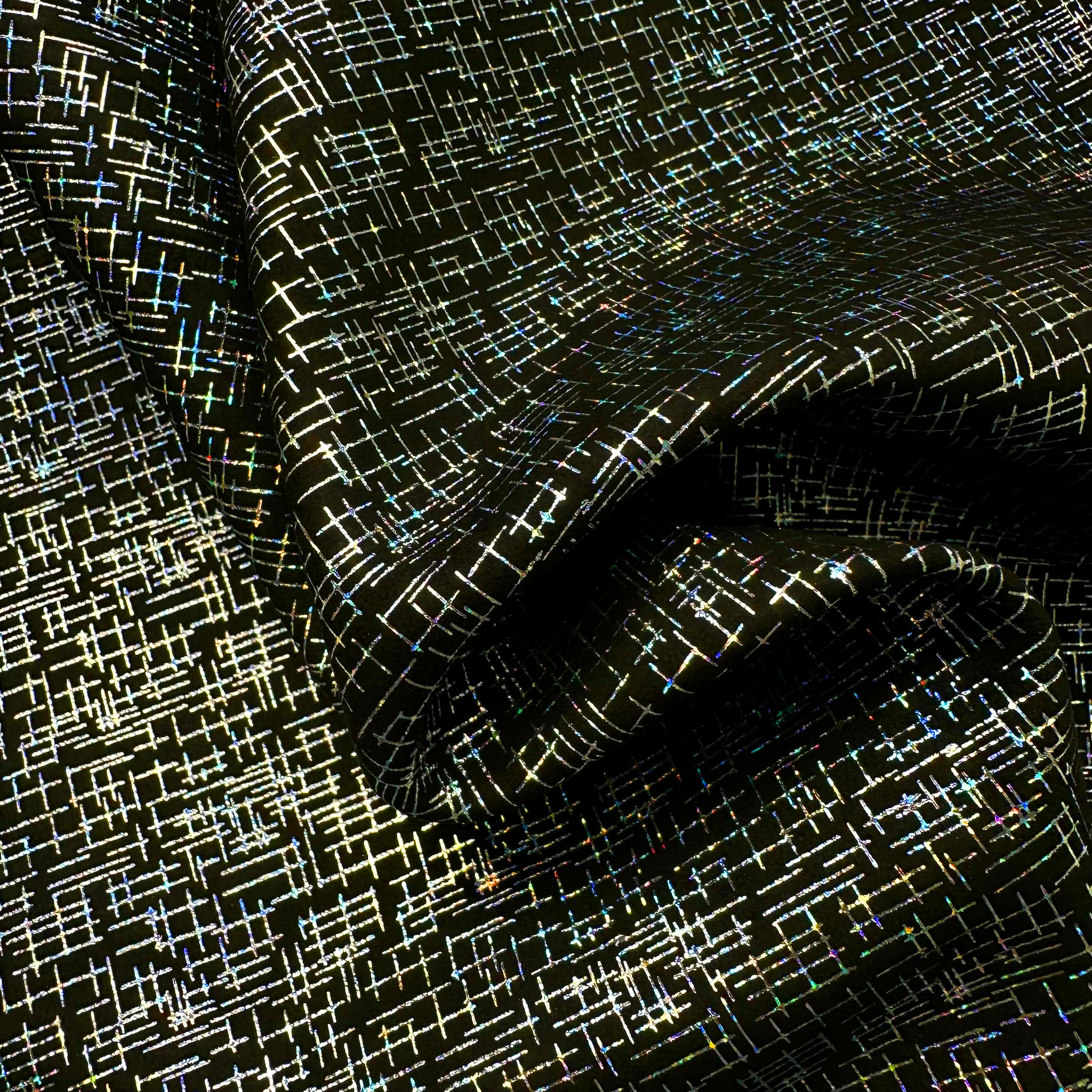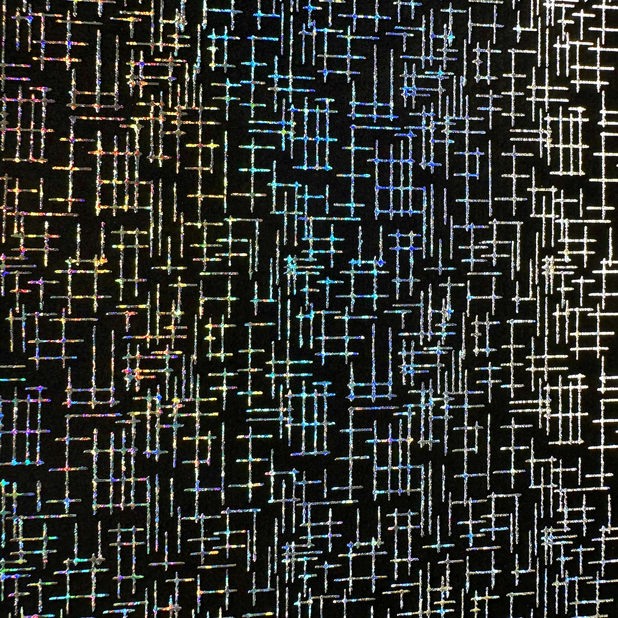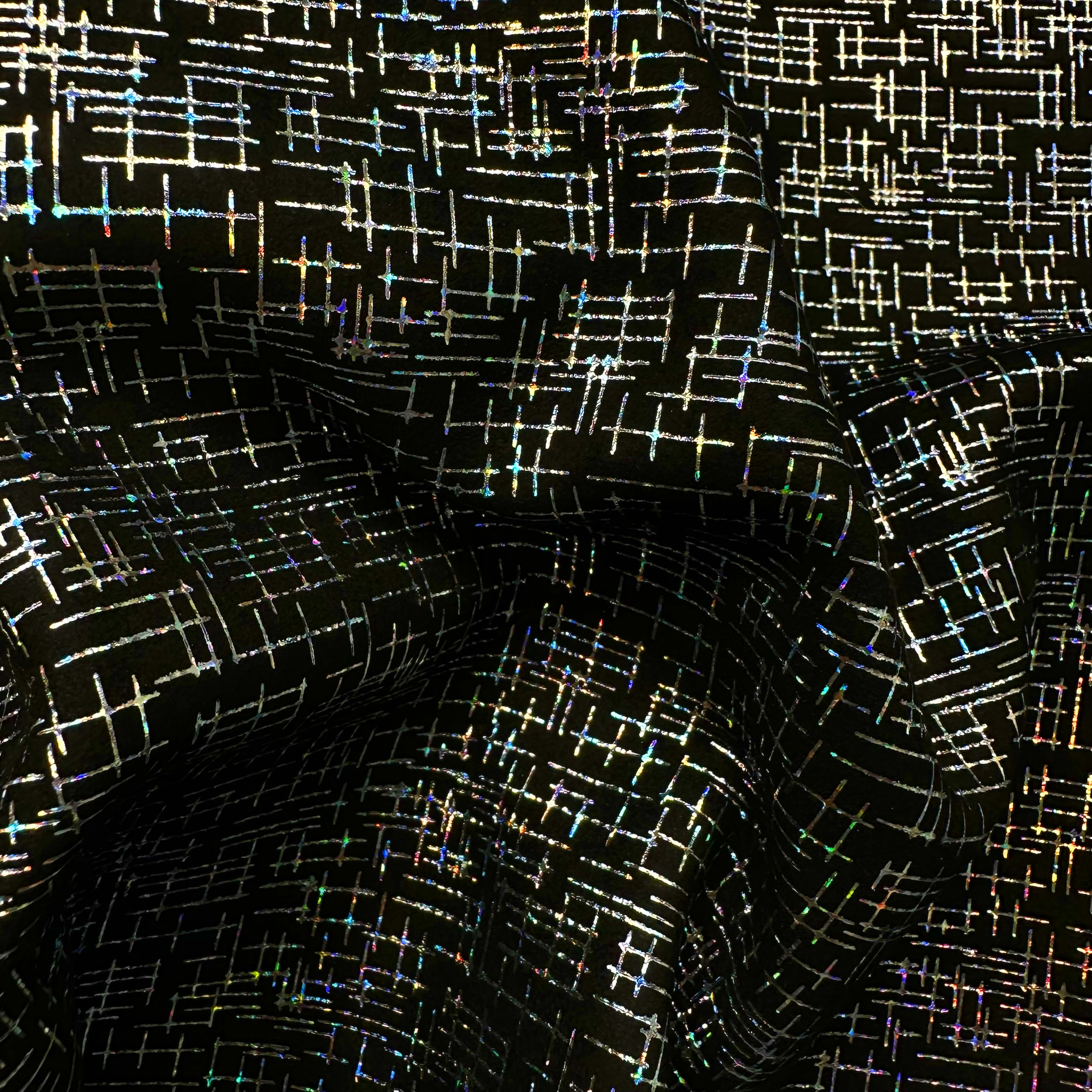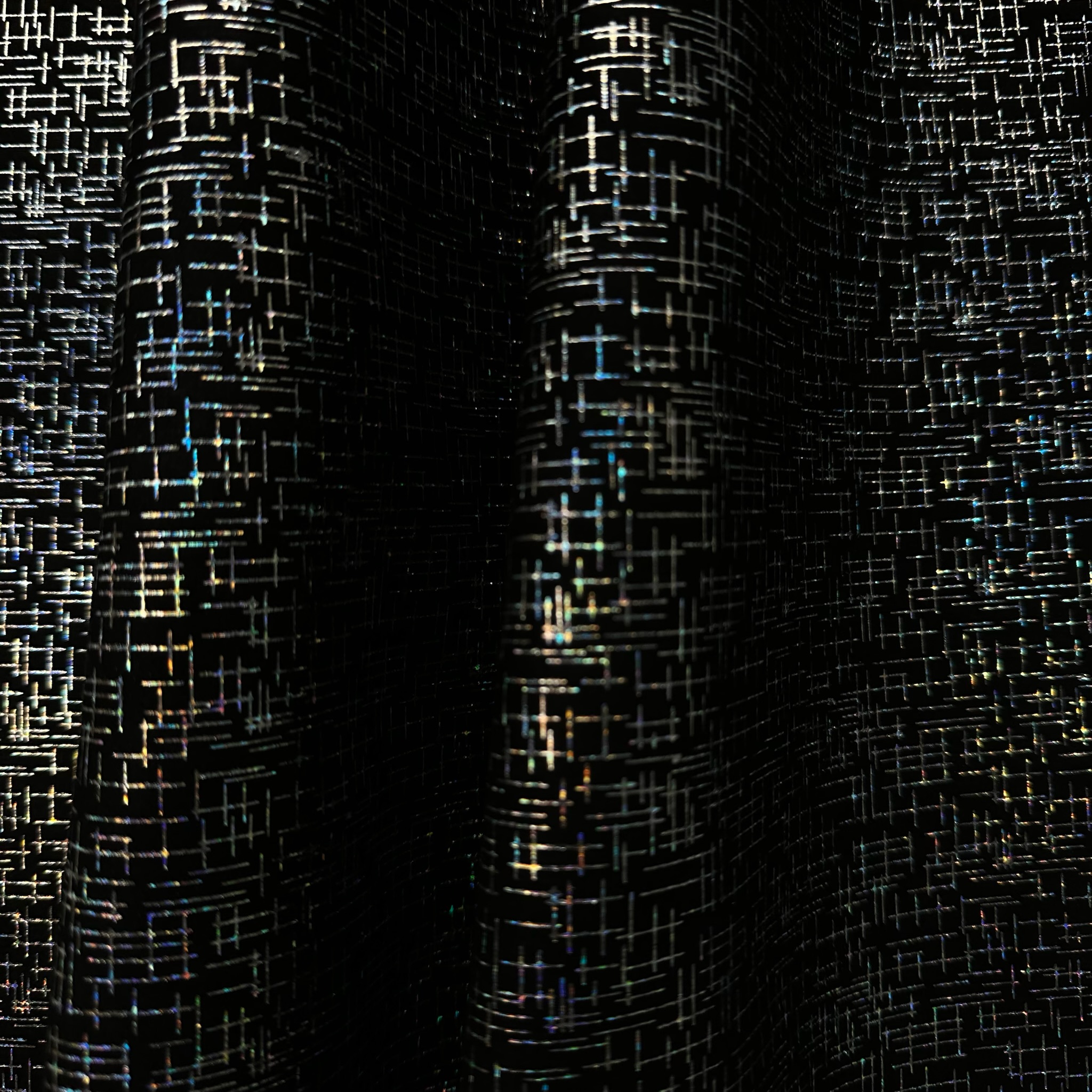 Dieses besondere Lammleder mit einer silber-metallischen Folierung auf tiefschwarzem Grund wirkt hypnotisierend durch sein irrisierendes Effekt. Die unregelmäßig verlaufendes Gittermuster erzeugt ein spannendes Lichtspiel – je nach Blickwinkel changiert die Oberfläche zwischen dezent und auffällig. Ideal für Projekte, die klare Linien mit edlem Glanz vereinen.