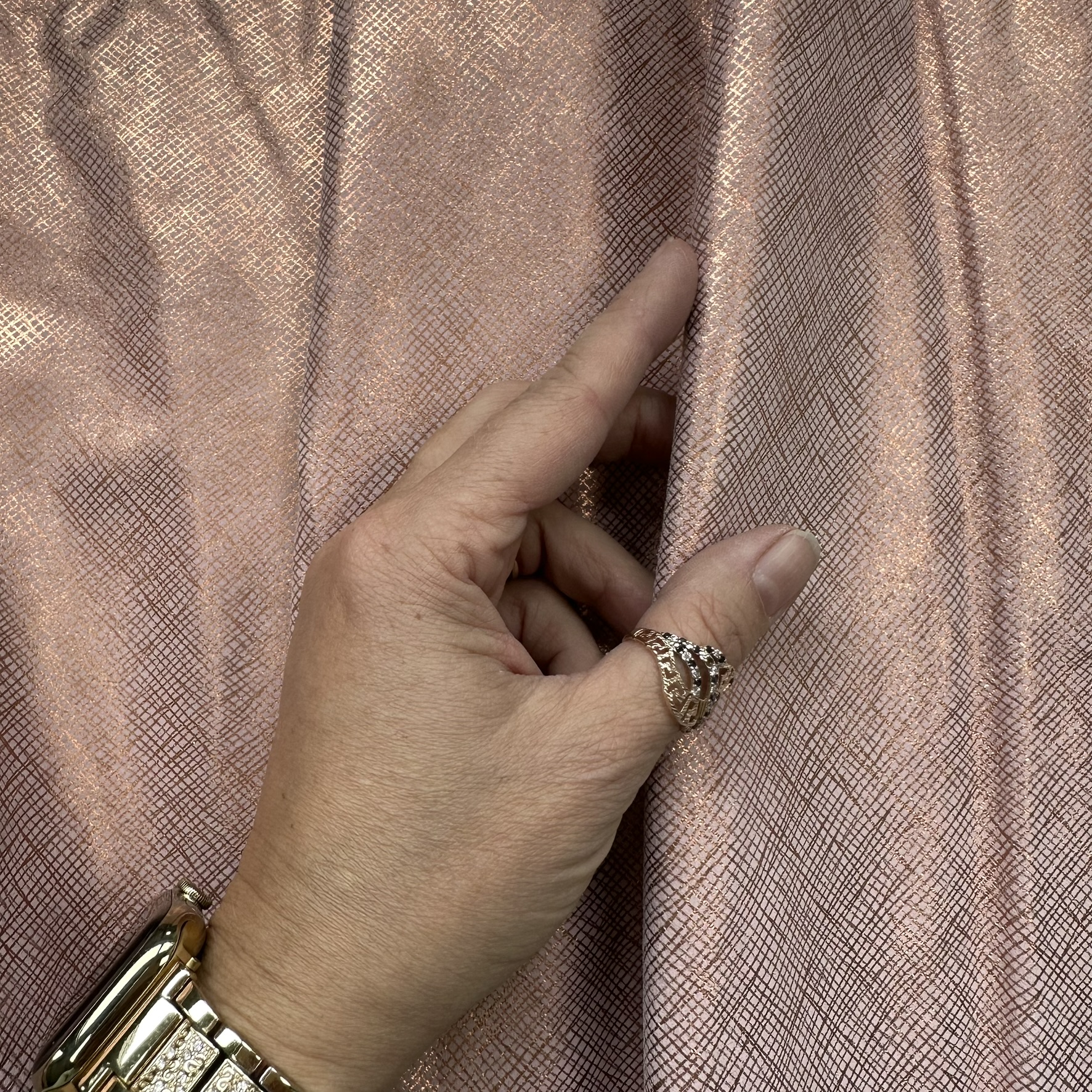 Dieses besondere Veloursleder besticht durch seine stilvolle Kupfer-Folierung in feiner Netzstruktur. Die Kombination aus der weichen, matten Lederbasis und dem glänzenden, geometrisch angelegten Muster verleiht dem Material eine exklusive Ausstrahlung – perfekt für edle Lederaccessoires, Clutches oder Statement-Schuhe.