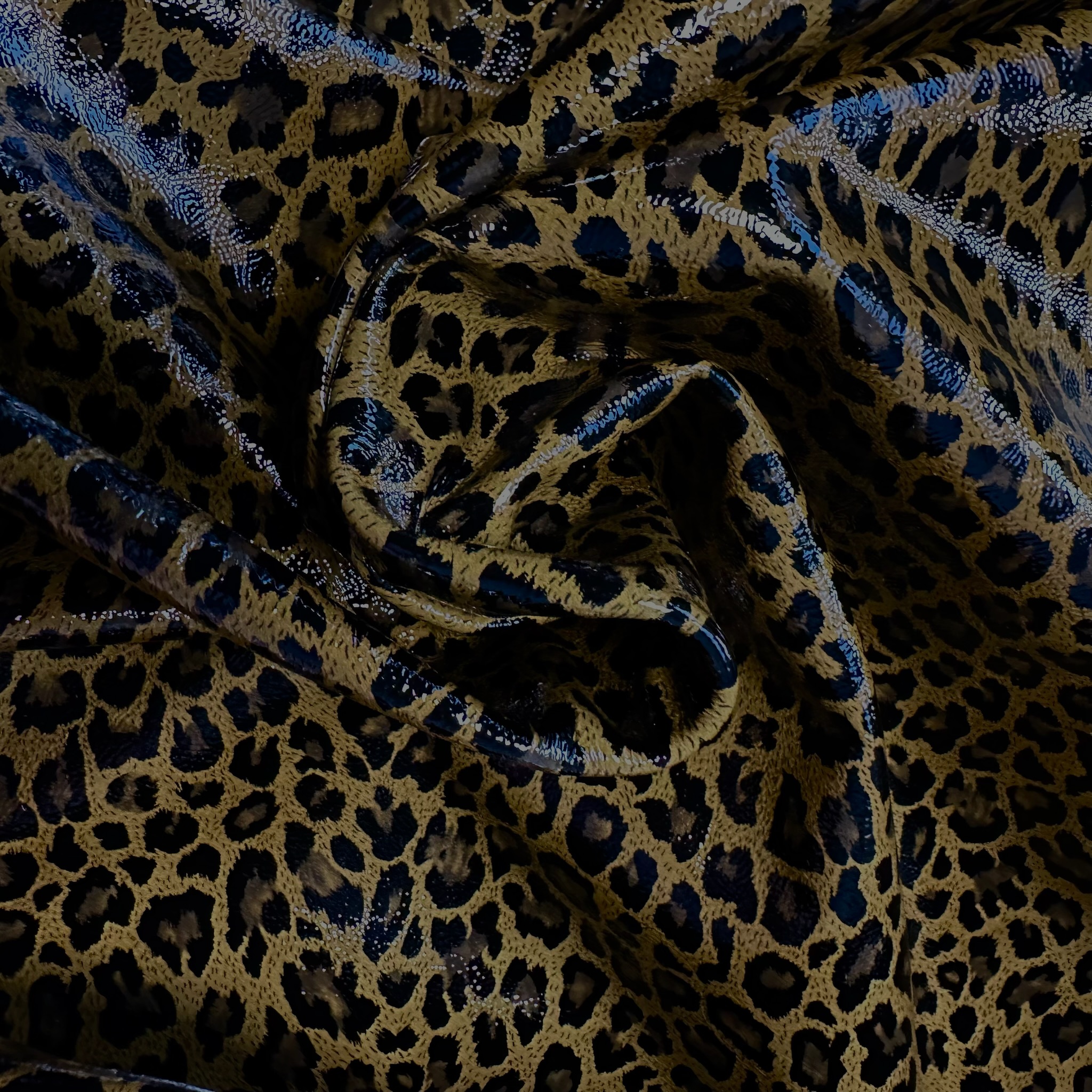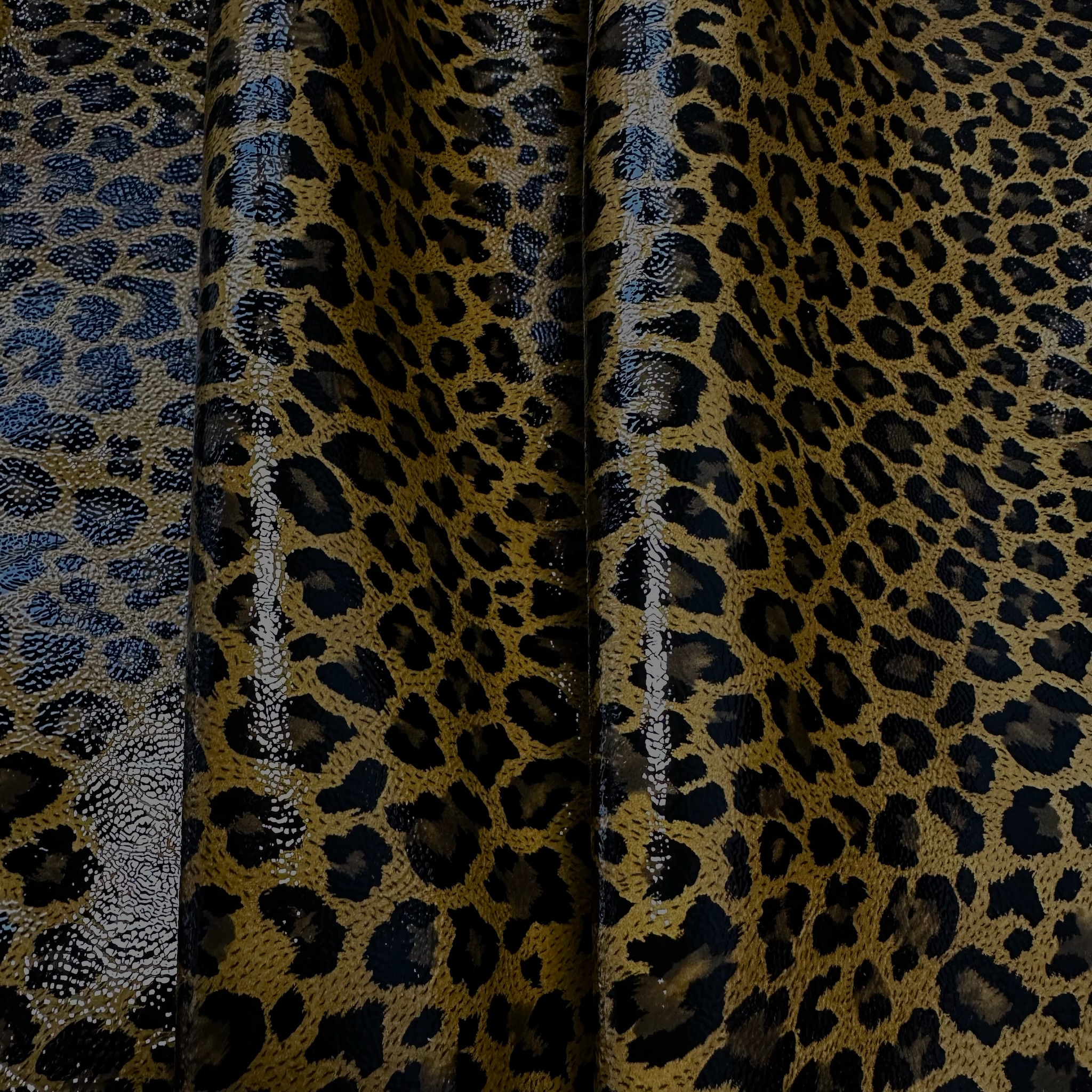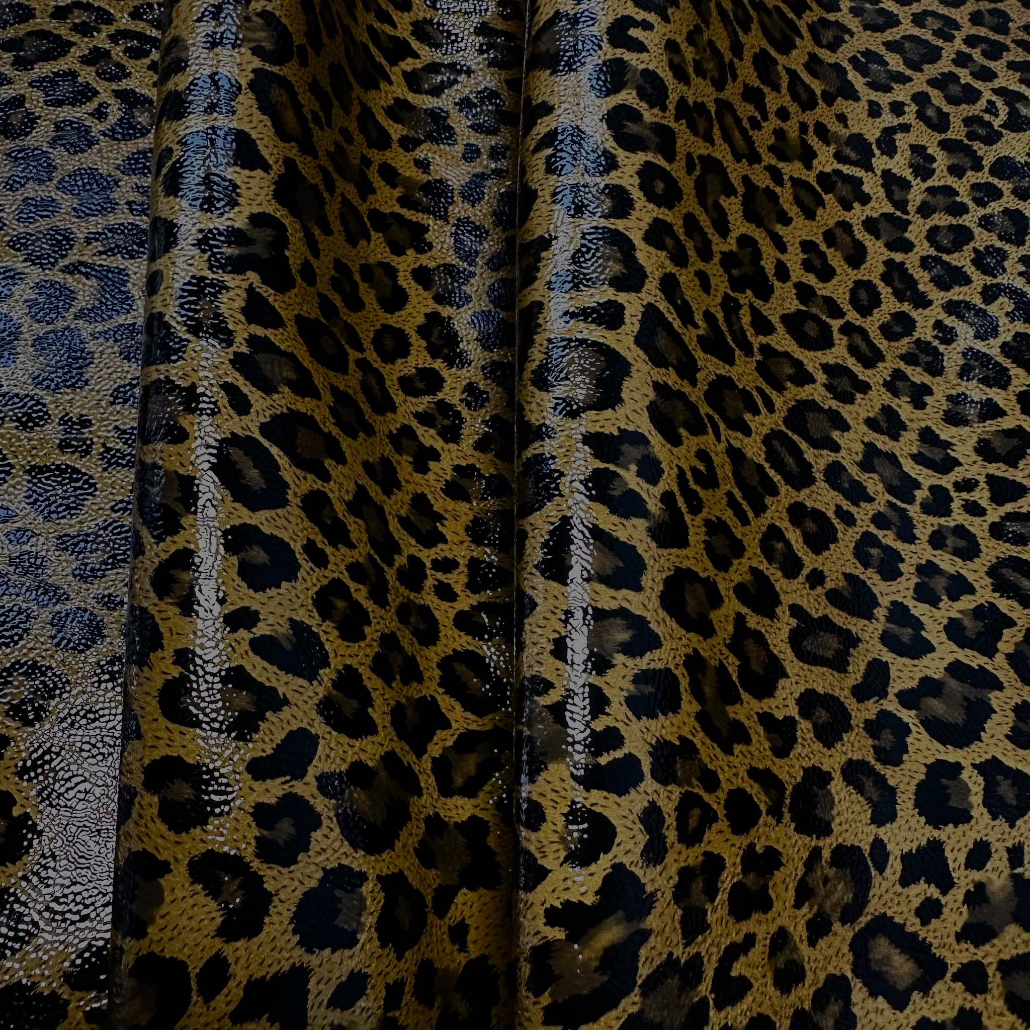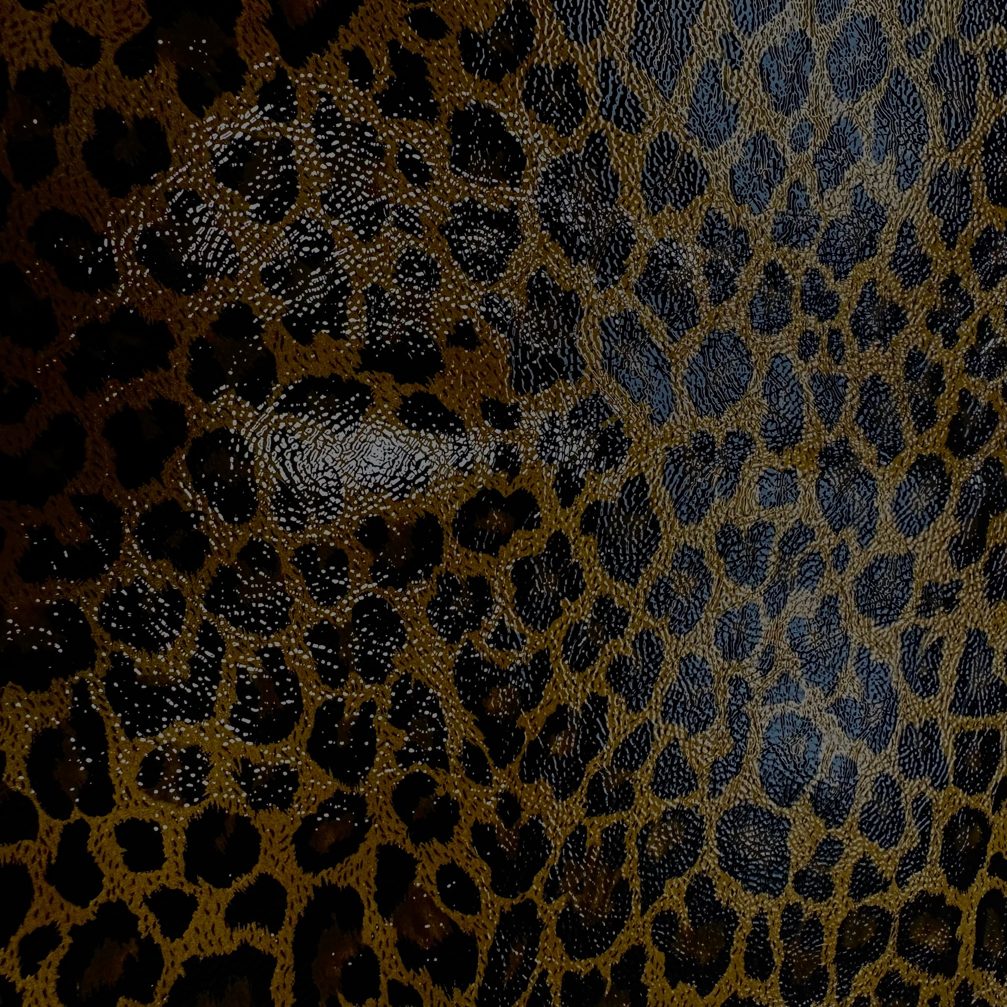 Dieses auffällige Lackleder kombiniert intensives Braun mit schwarzem Leopardenmuster und einer hochglänzenden Oberfläche. Trotz der Lackierung bleibt das Leder angenehm weich und flexibel. Ein echtes Statement für Taschen, Schuhe und kreative Designprojekte – auch im Möbelbereich einsetzbar, z. B. als stilvolles Highlight auf Stuhl- oder Rückenlehnen.