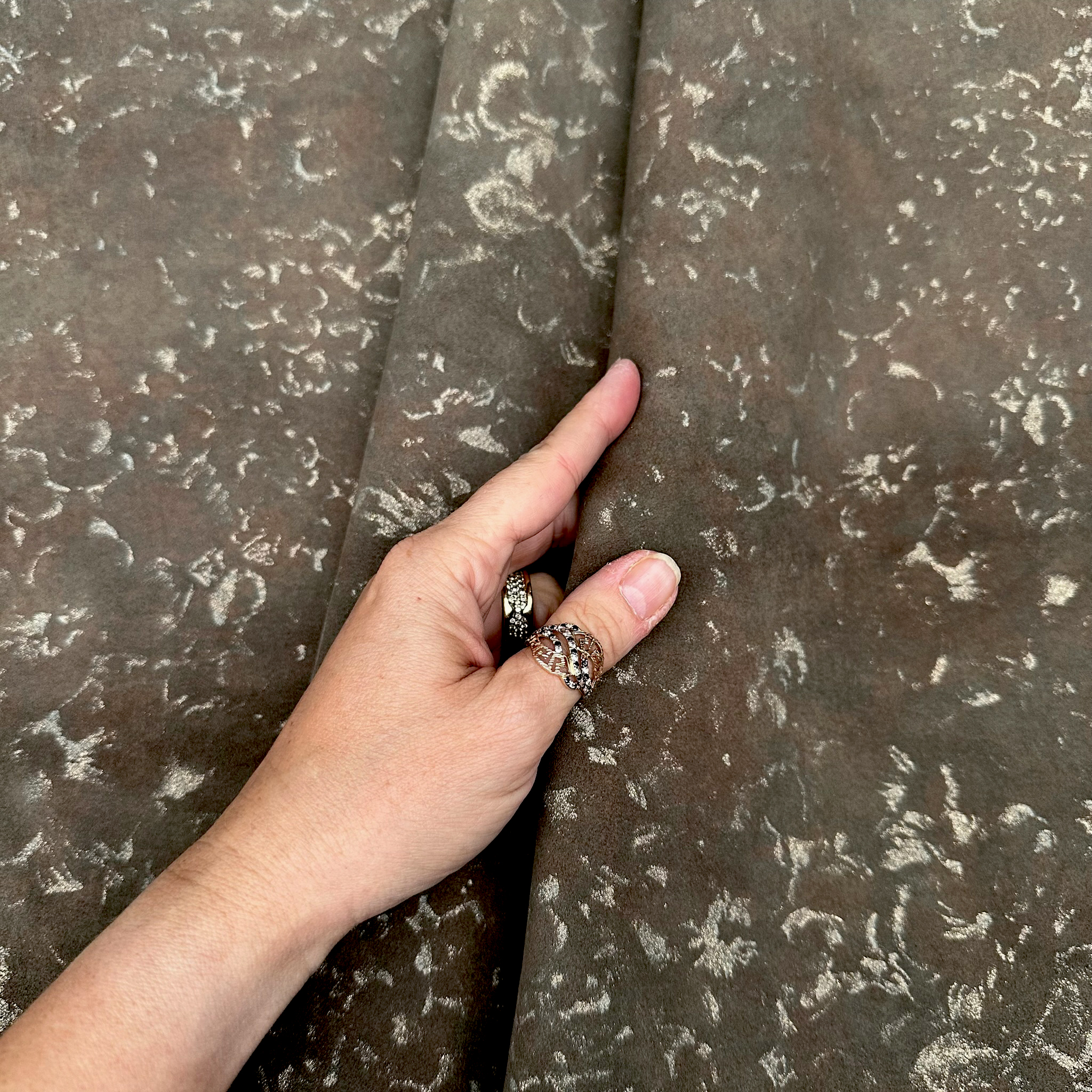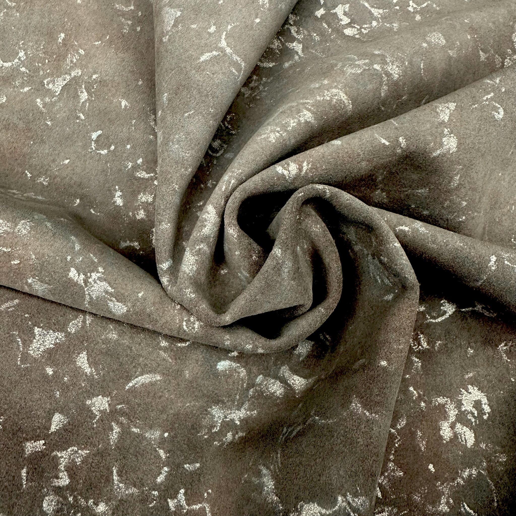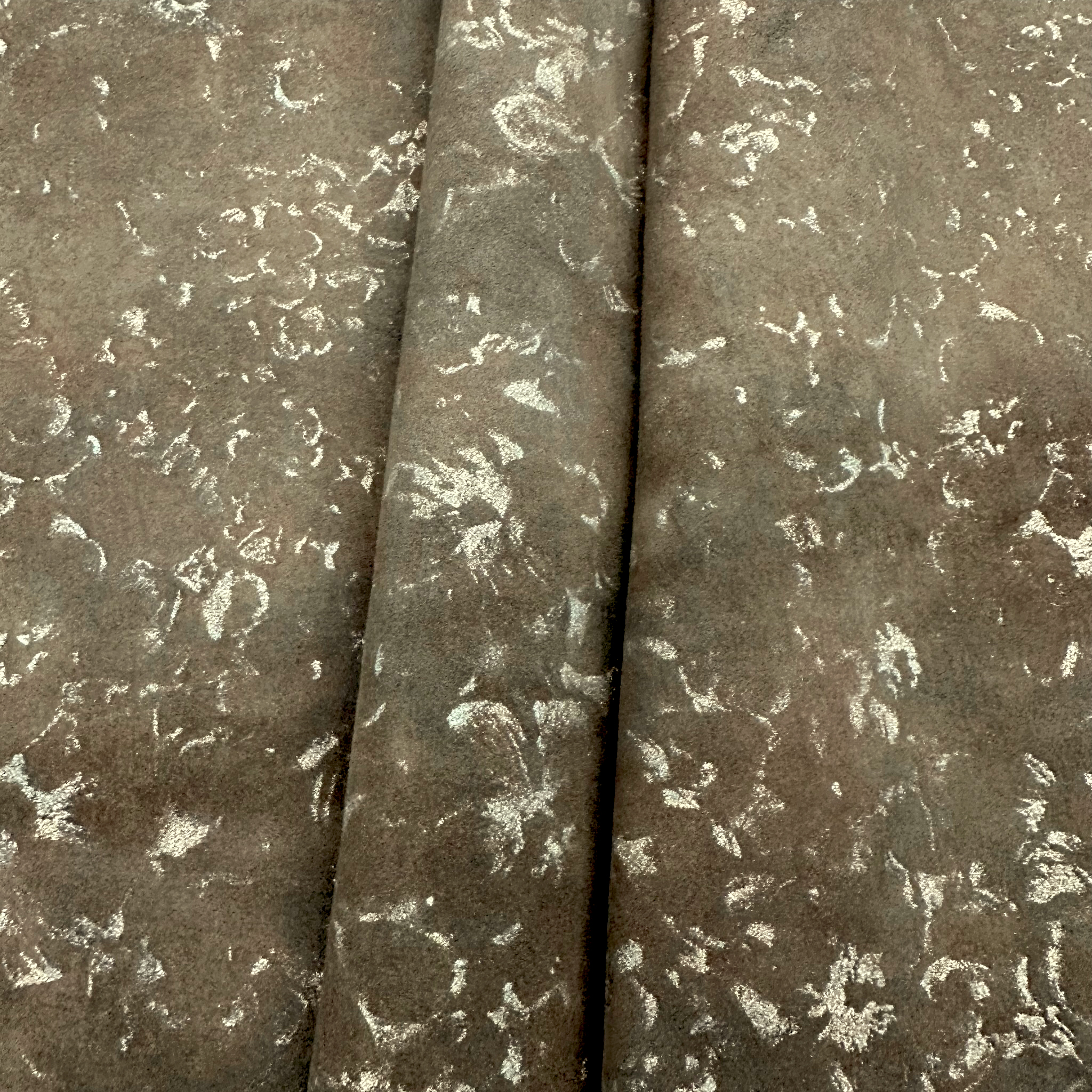 Dieses außergewöhnliche Veloursleder besticht durch ein leicht abstraktes Blütenmuster, das durch filigrane Heißprägung auf der Oberfläche entsteht. Abgerundet wird das Design durch eine unregelmäßige Glitterveredelung. Die leichte Marmorierung verleiht dem Leder eine faszinierende Tiefe – ein einzigartiger Blickfang für extravagante Taschen und stilvolle Schuhdesigns.