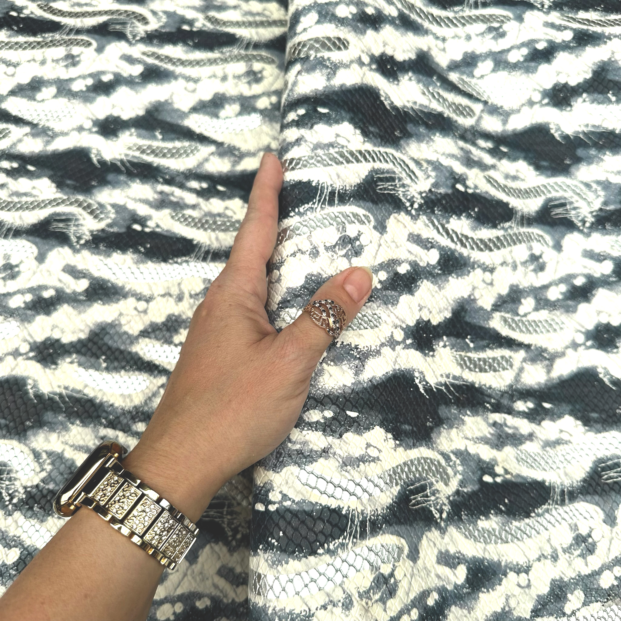 • Muster: Abstrakter Allover-Print mit Mikrostruktur, 3D Schlangenprägung