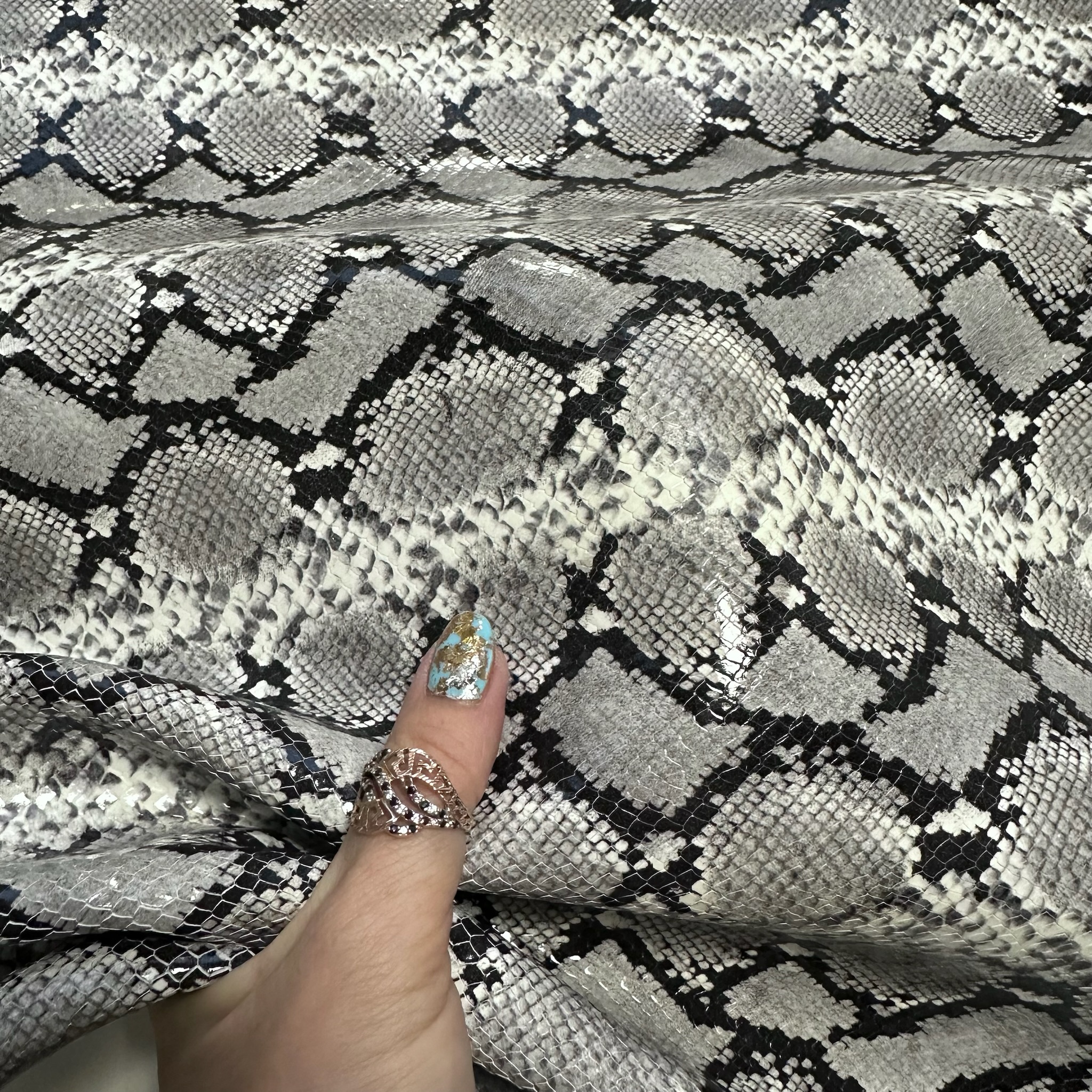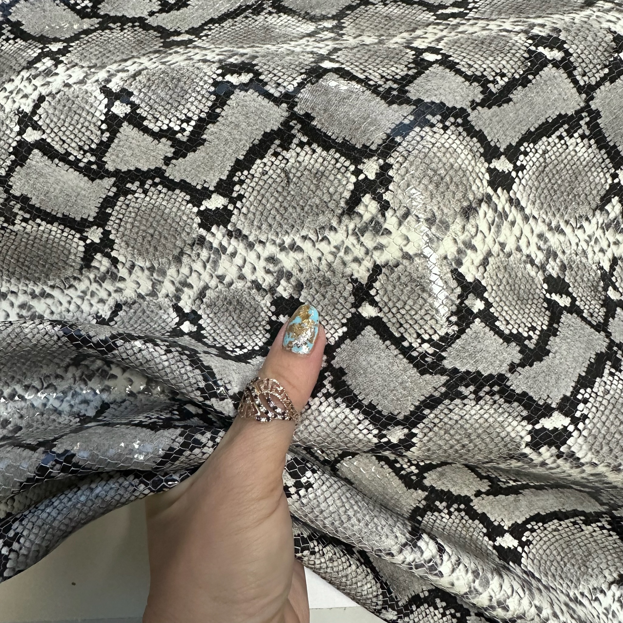 Produktinformationen "Schuh- & Taschenleder „Python Hellgrau Glanz“ – Leder mit 3D-Schlangenprägung & Marmor-Effekt "