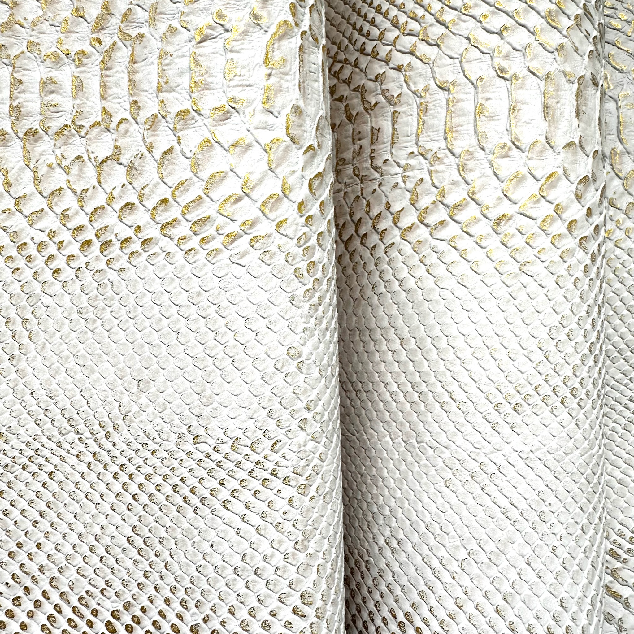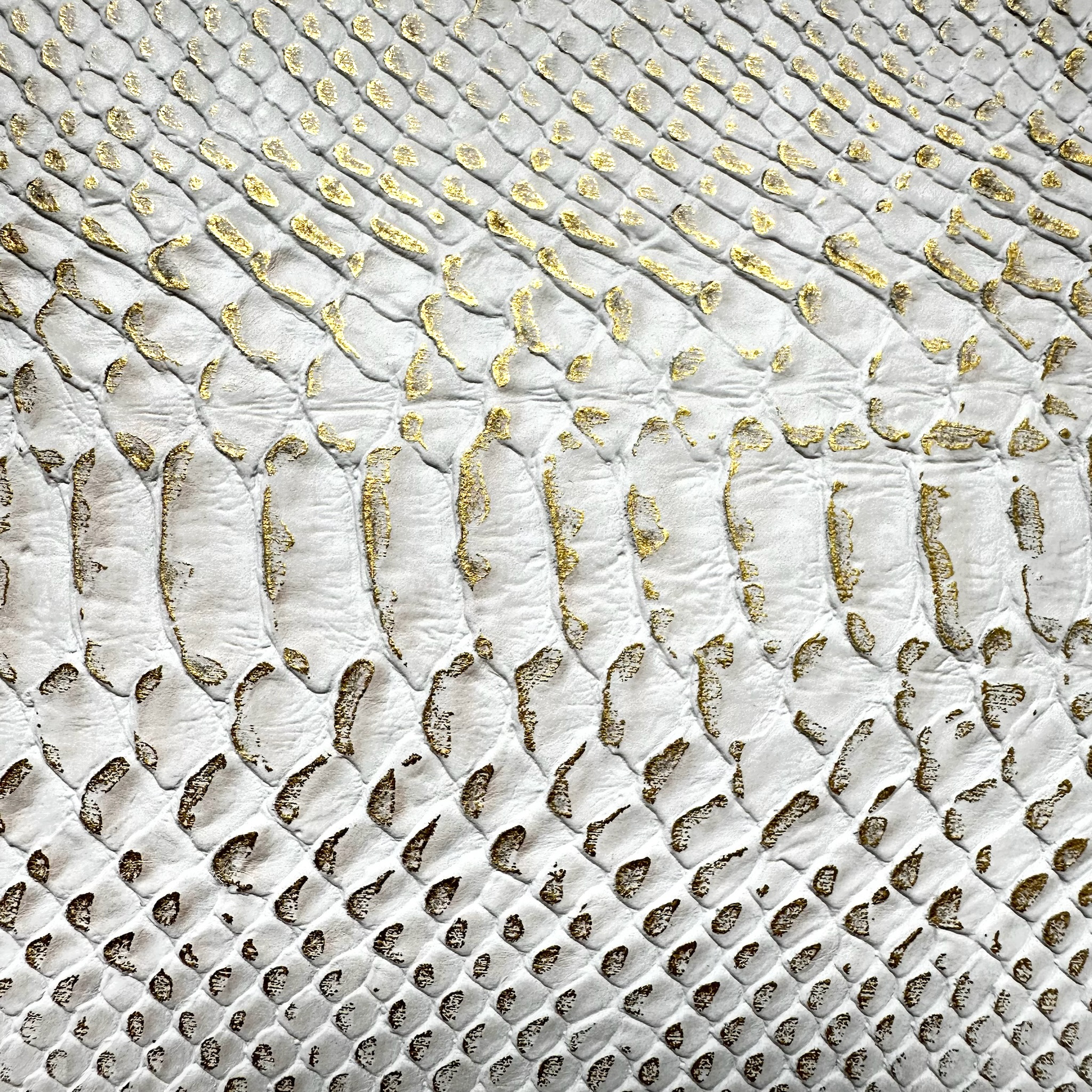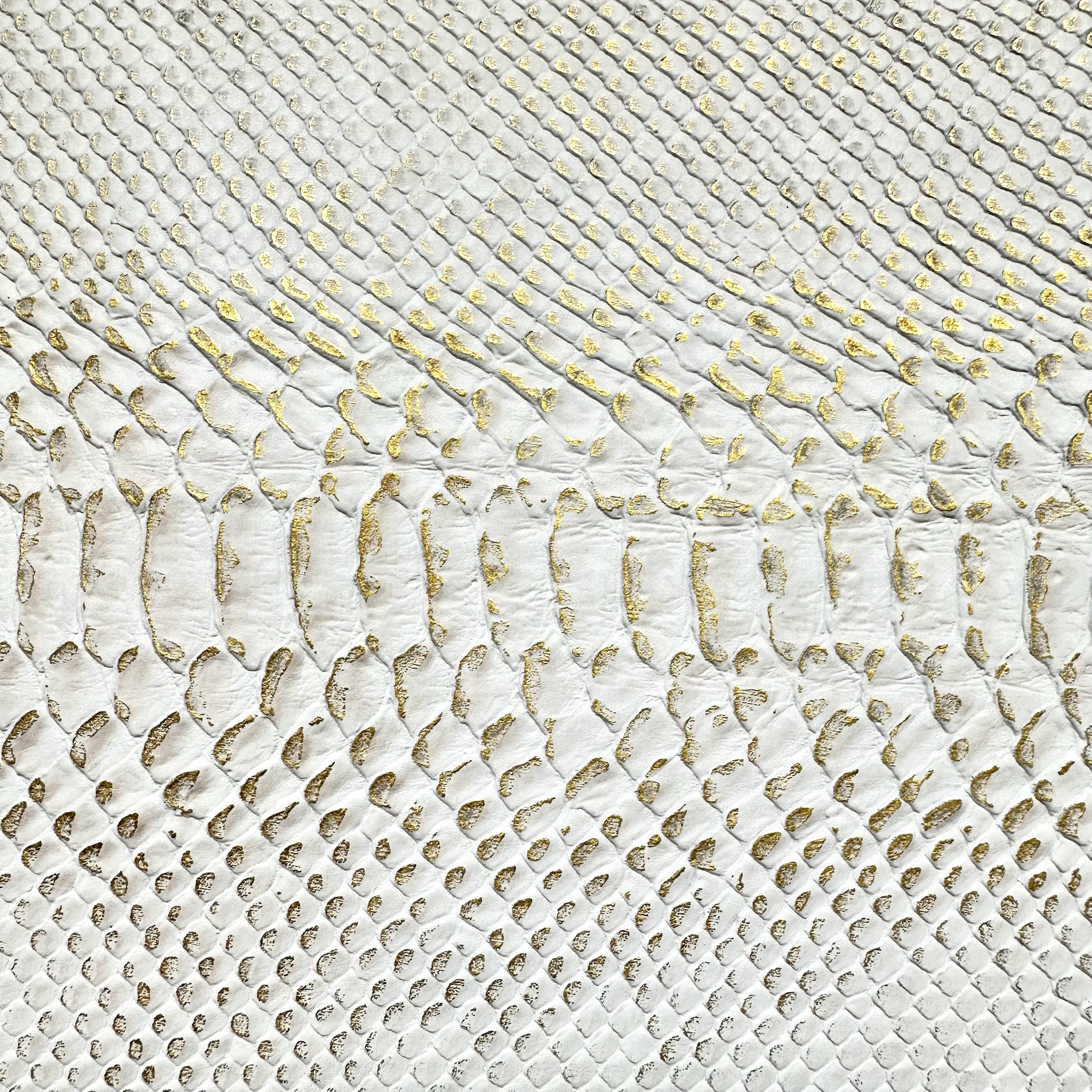 Schuh- & Taschenleder „Python Weiß mit Goldakzenten“ – Rindleder mit 3D-Reptilprägung & Metallic-Finish