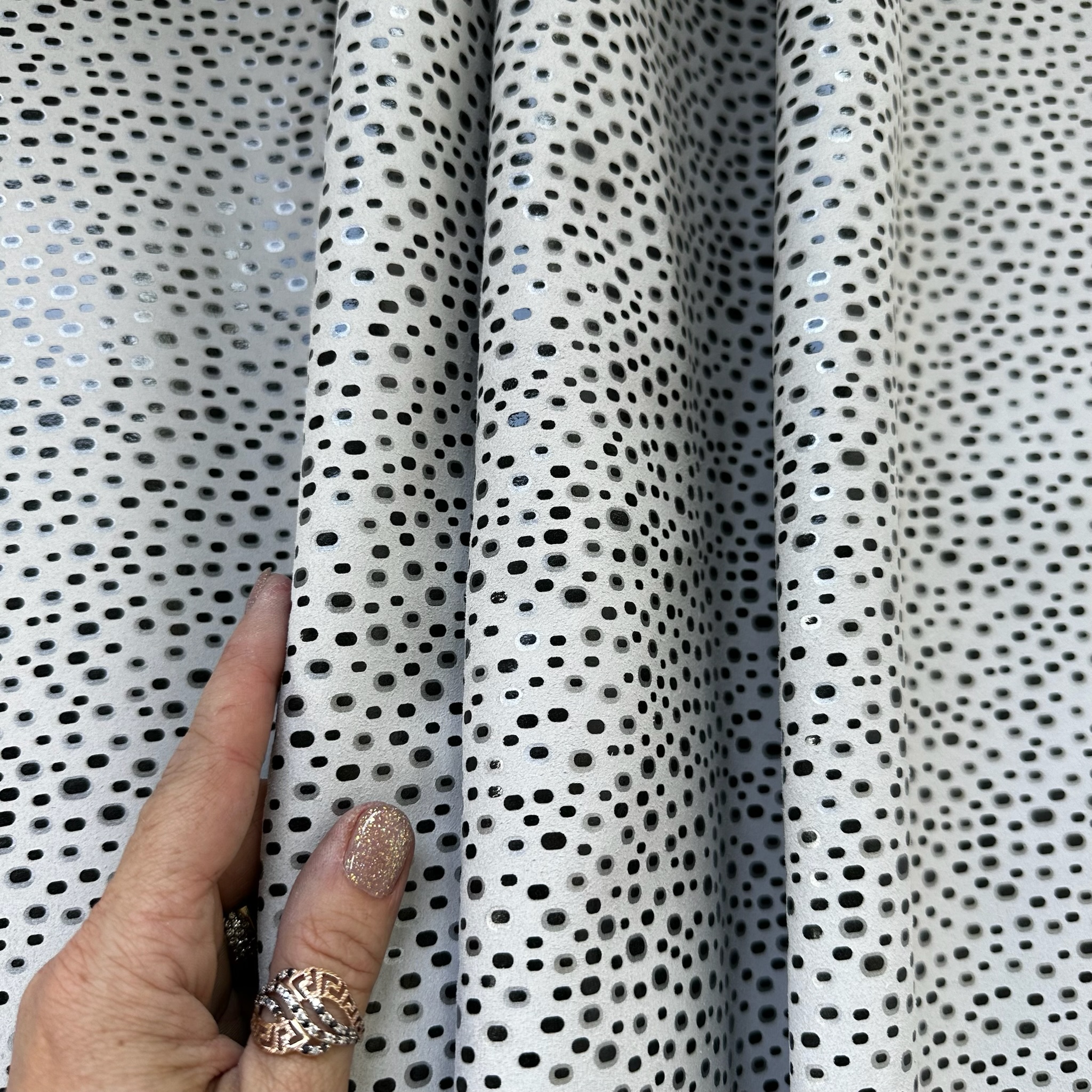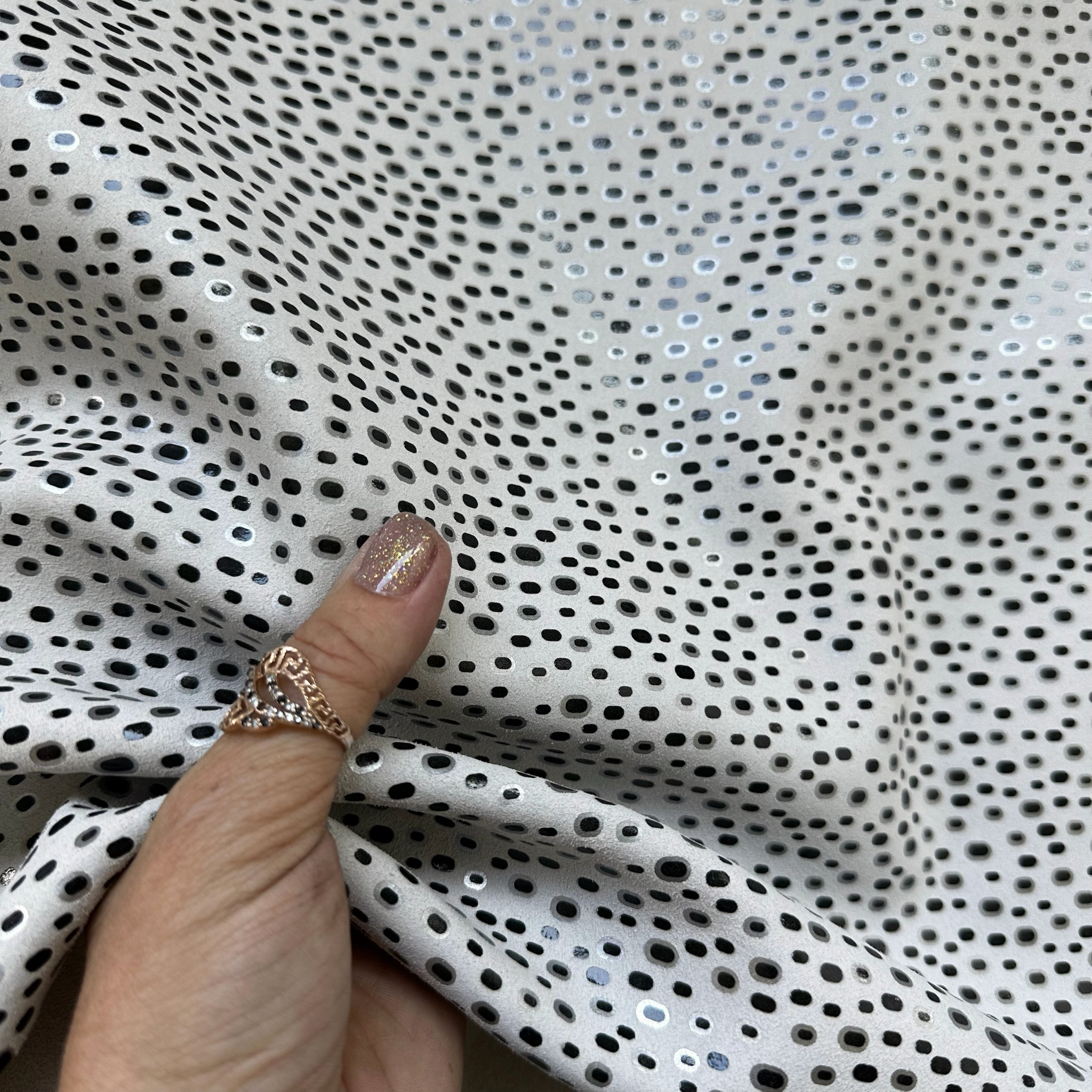 Schuh- & Taschenleder „Schwarze Punkte“ – Lammleder mit Folierung und Prägung mit Akzenten in Silber-Metallic