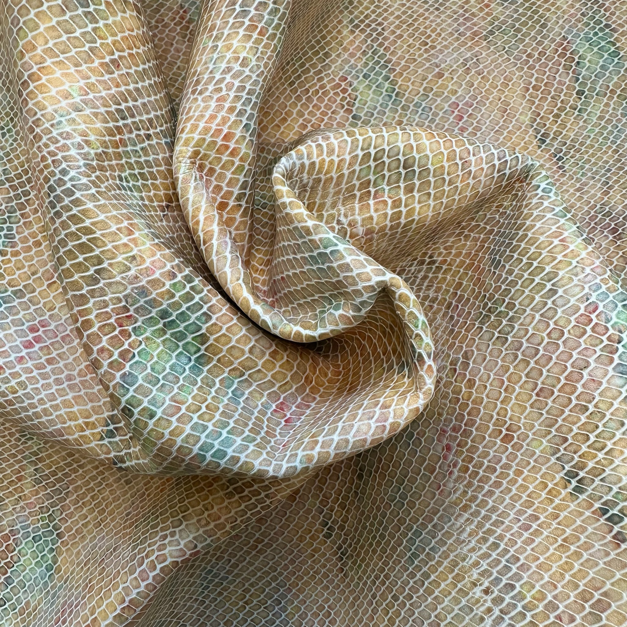 Produktinformationen "Schuh- & Taschenleder „Soft Snake Pastell“ – Leder mit 3D-Schlangenprägung in Aquarelloptik"